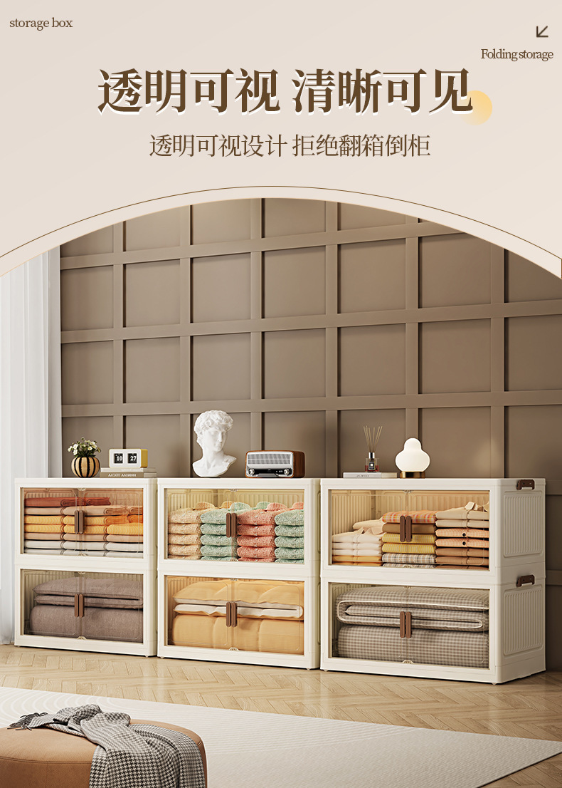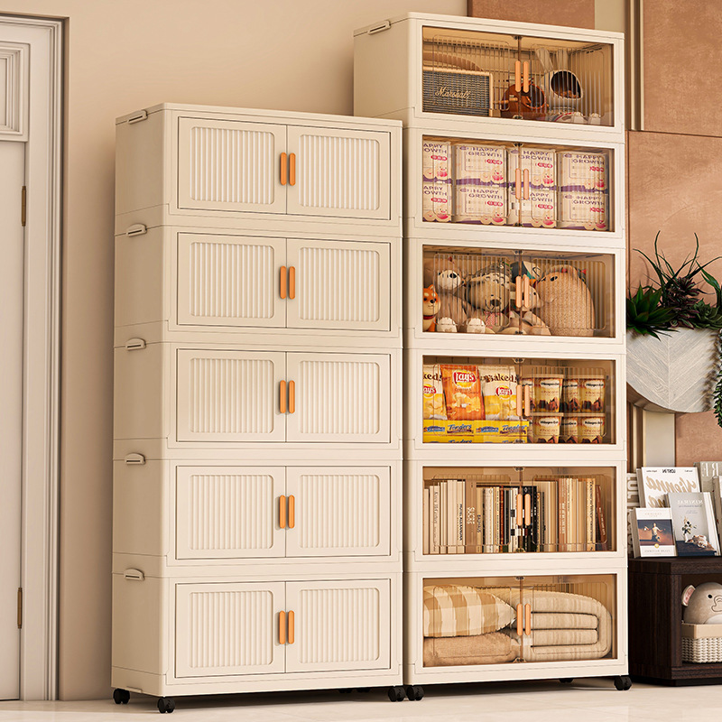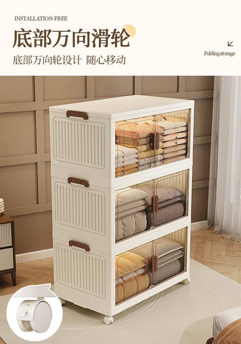 ✅客厅出租屋折叠收纳柜零食玩具储物柜宝宝衣柜整理多层置物柜