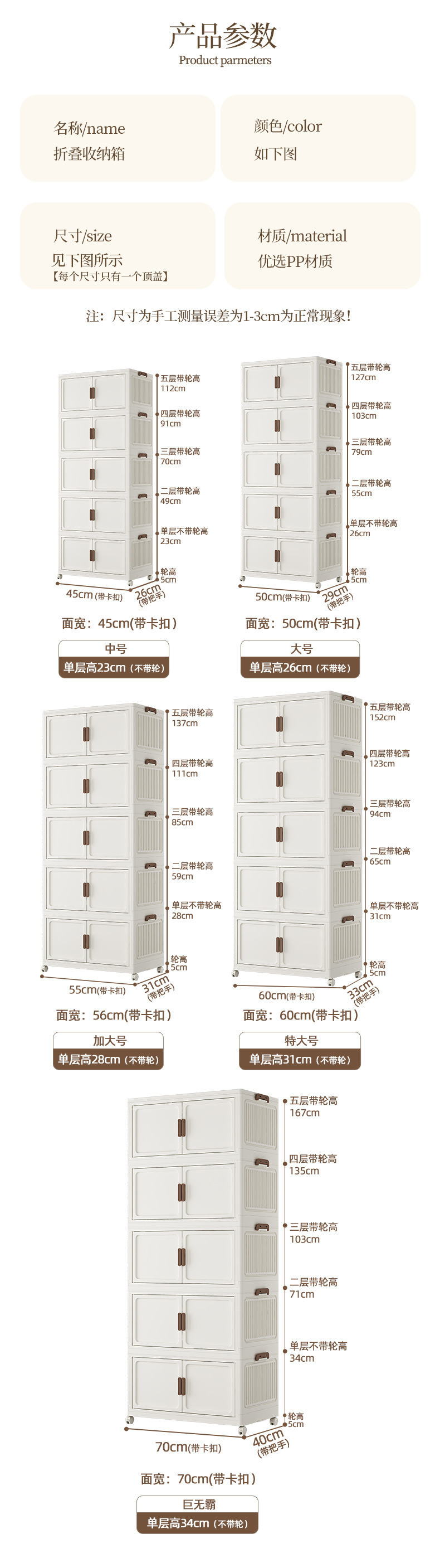 白色折り畳みプラスチック収納ボックス多層無取付服布団整理箱超大容量家庭用ロッカー