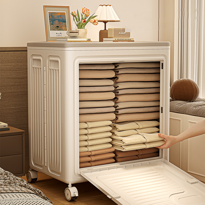 衣類収納ボックス家庭用超大容量滑車付き折りたたみフリップトップ収納ボックス季節の衣類キルト収納キャビネット