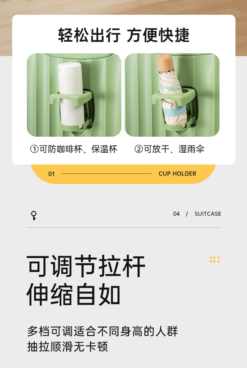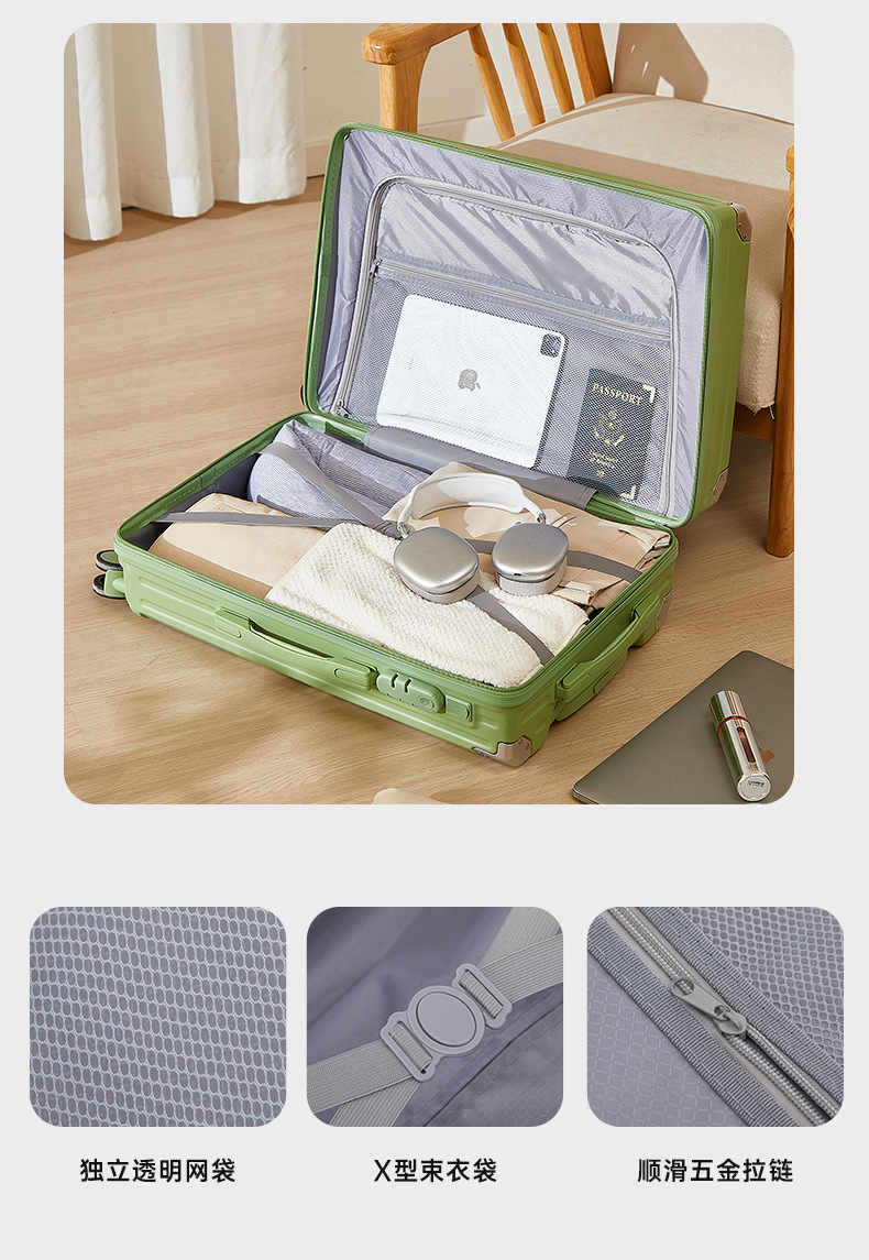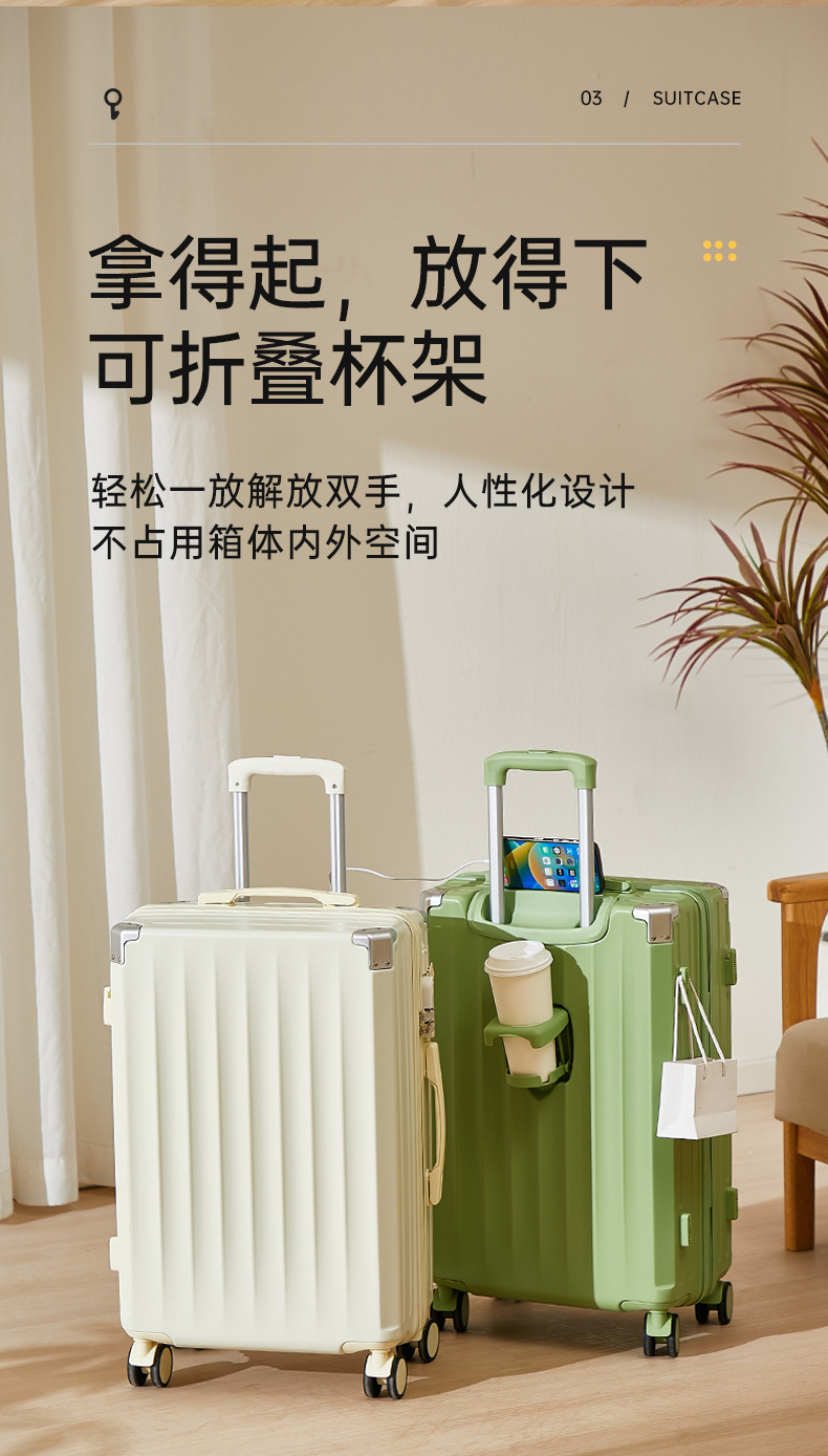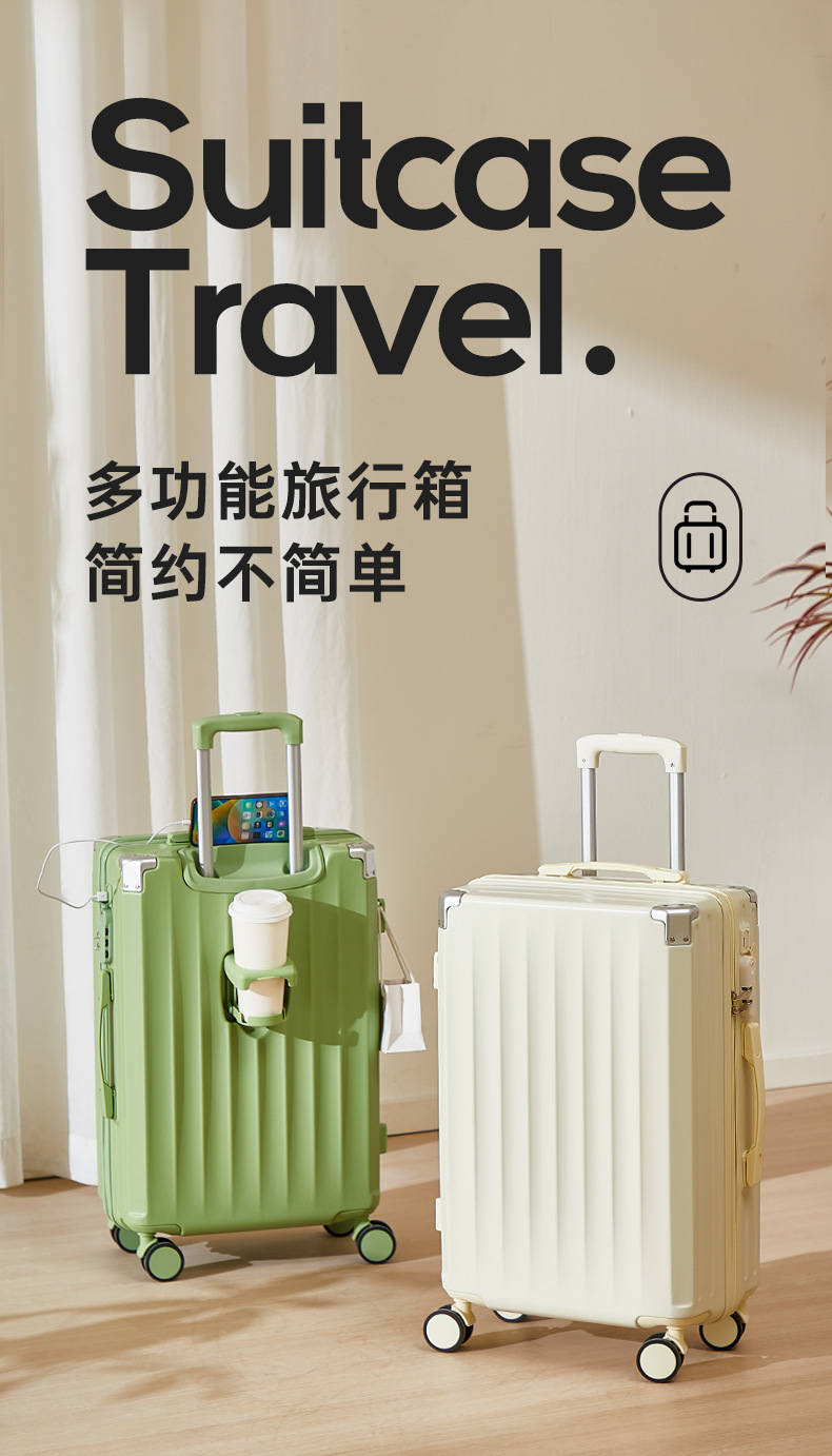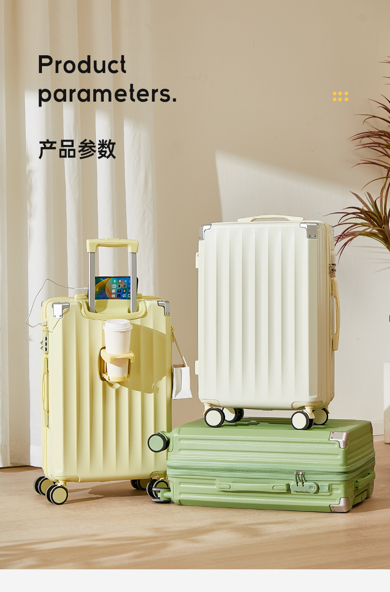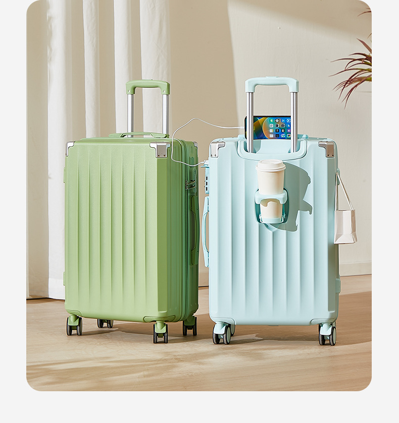 前開きサイドオープン荷物入れ、女性用カップホルダー、便利なフック、20インチ機内持ち込みスーツケース、24inchインチ旅行用トロリーケース、万能ホイール