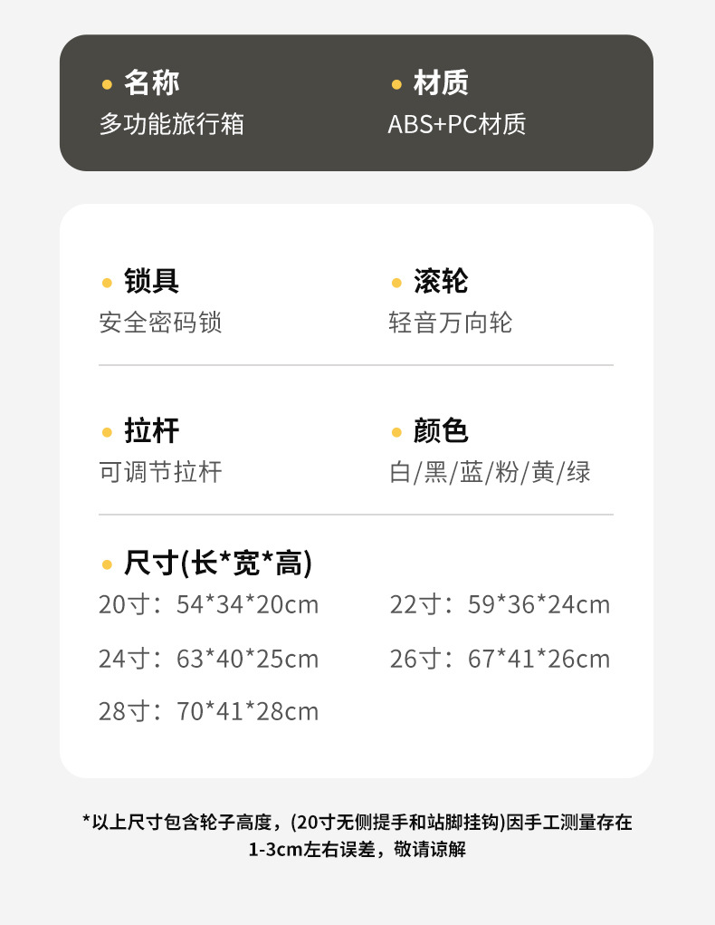 尺寸 20寸,22寸,24寸,26寸