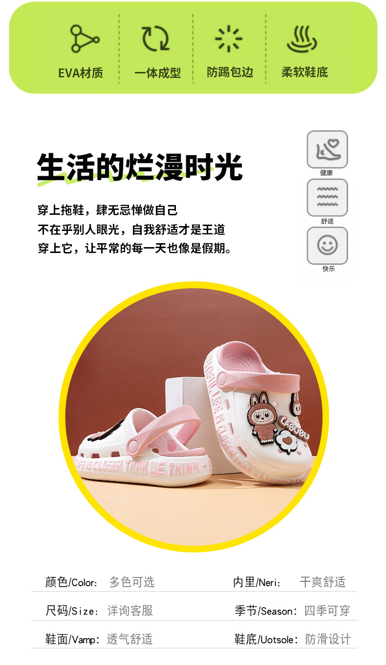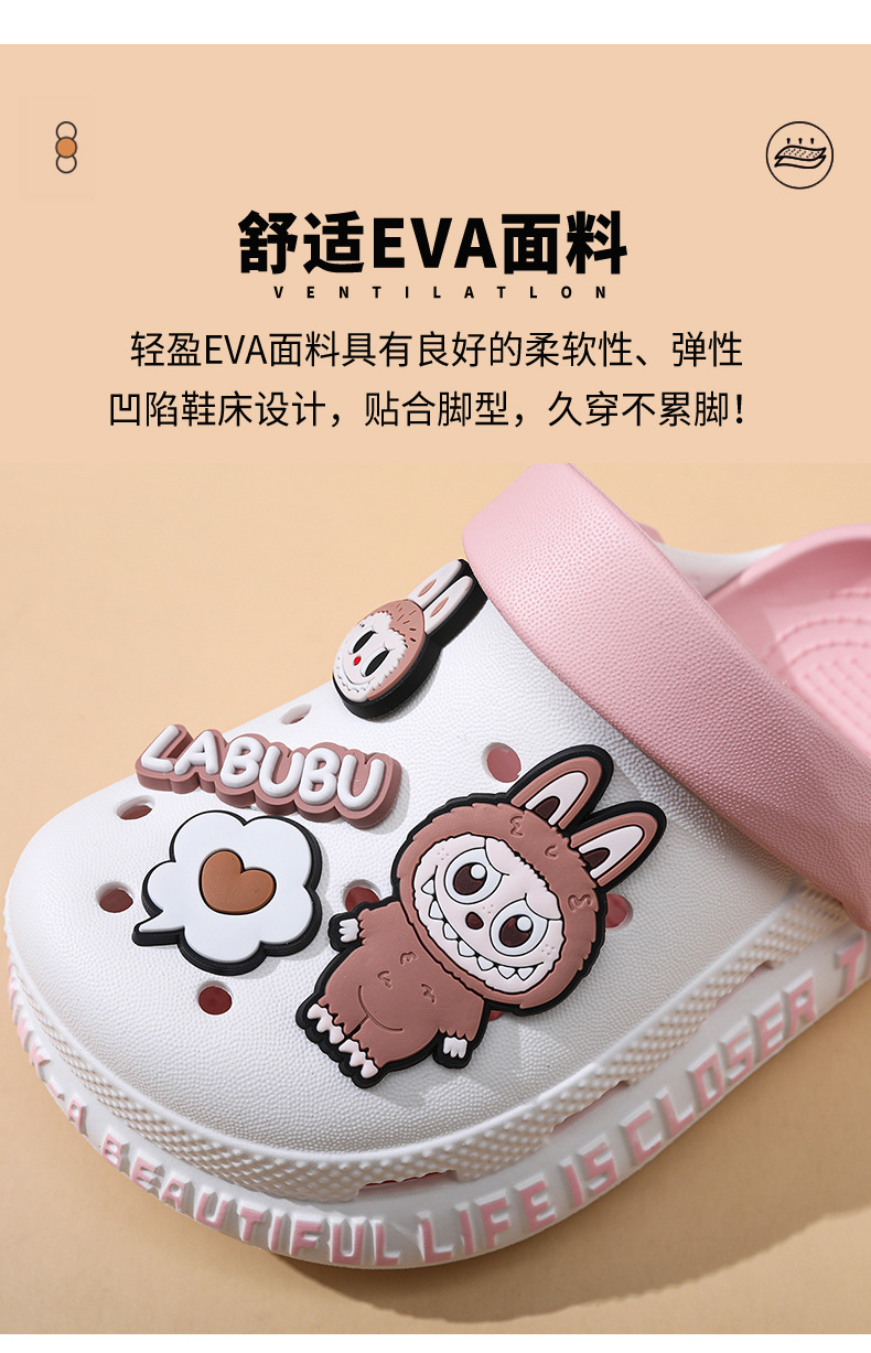 labubu儿童洞洞鞋女童拖鞋防滑女孩宝宝沙滩凉鞋EVA防臭包头拖鞋