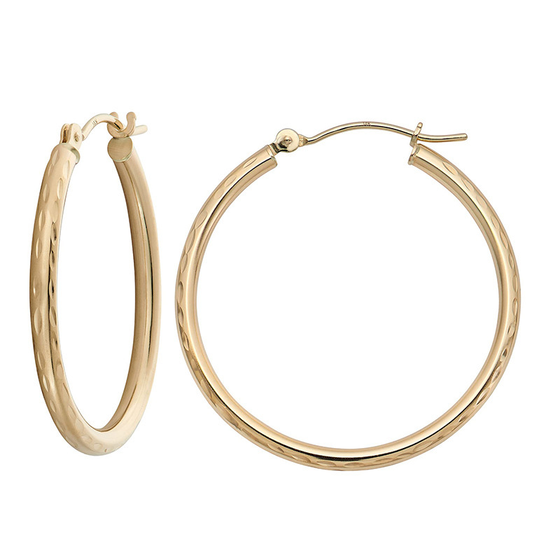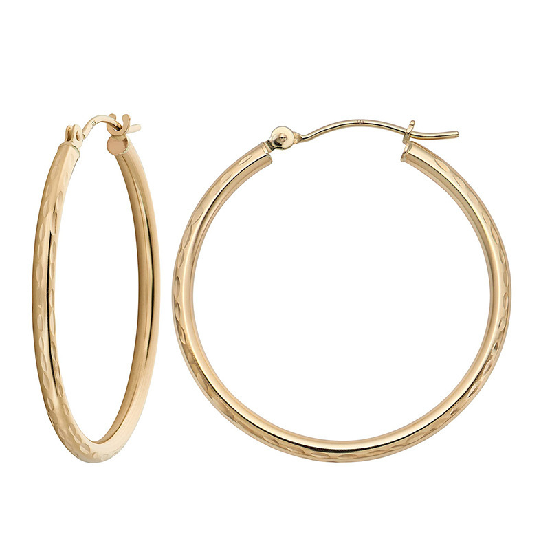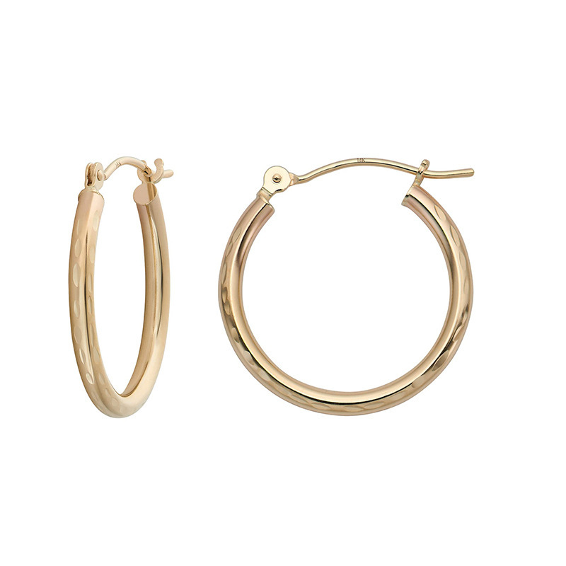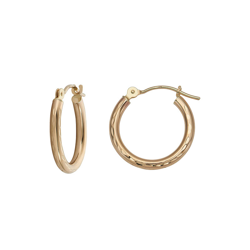 クロスボーダー 14K ダイヤモンドカット ゴールド フープ イヤリング 低刺激性 スナップ トップ クロージャー フープ イヤリング 女性用