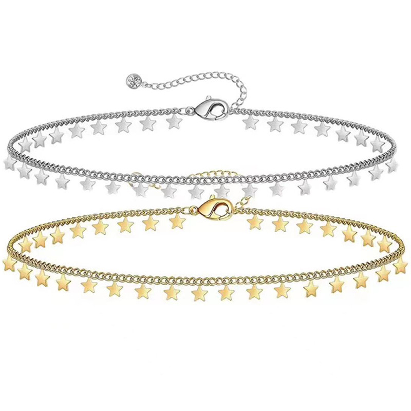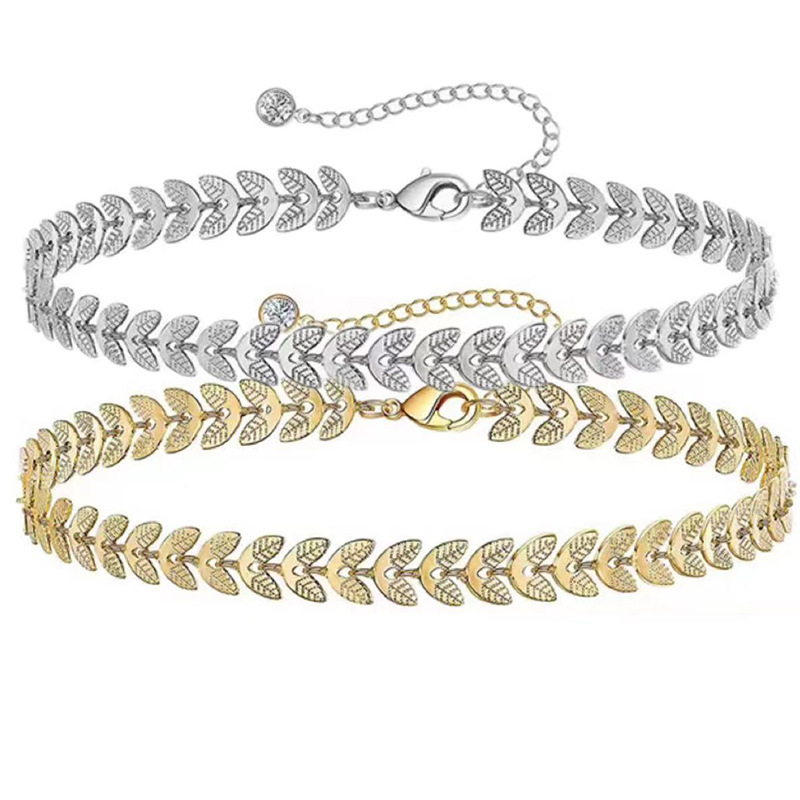 跨境金色脚踝手链,14k镀金女式防水分层树叶串珠古巴链脚链脚