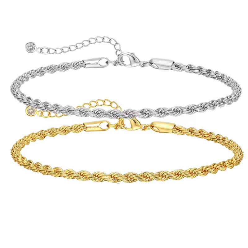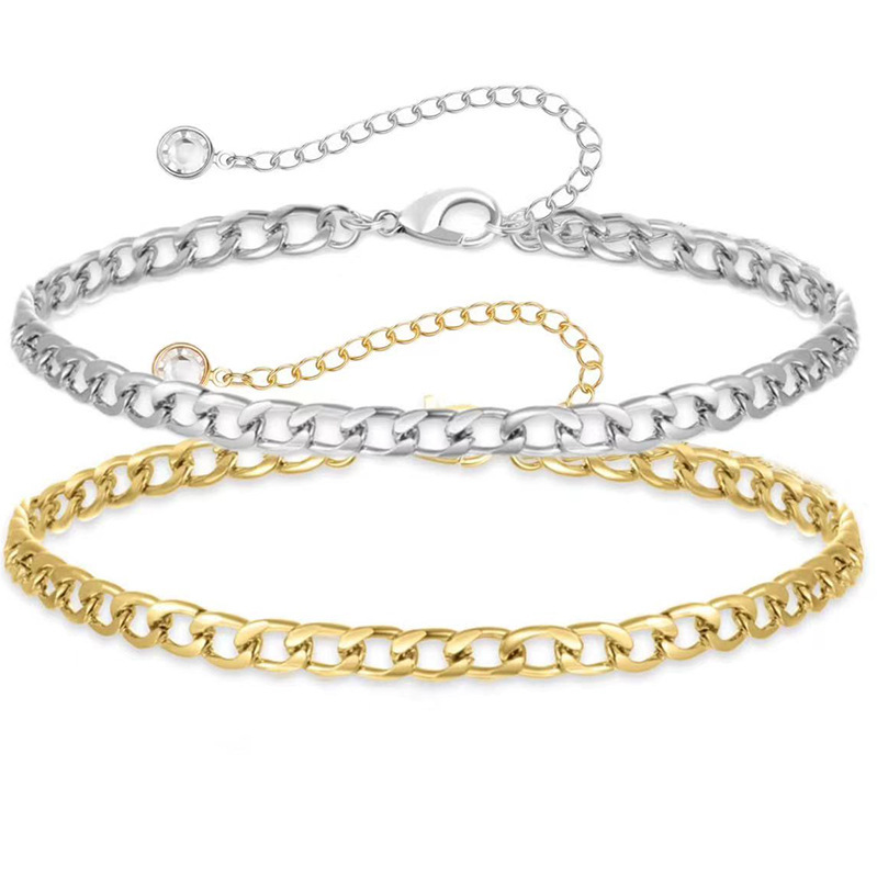 クロスボーダー女性用ゴールドブレスレット、14Kゴールドメッキ繊細なブレスレットセット積み重ね可能なブレスレット調節可能なシンプルなブレスレット