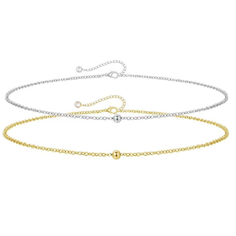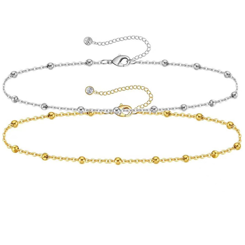 クロスボーダーゴールドアンクレットブレスレット、14Kゴールドメッキレディース防水レイヤードリーフビーズキューバチェーンアンクレットフィート