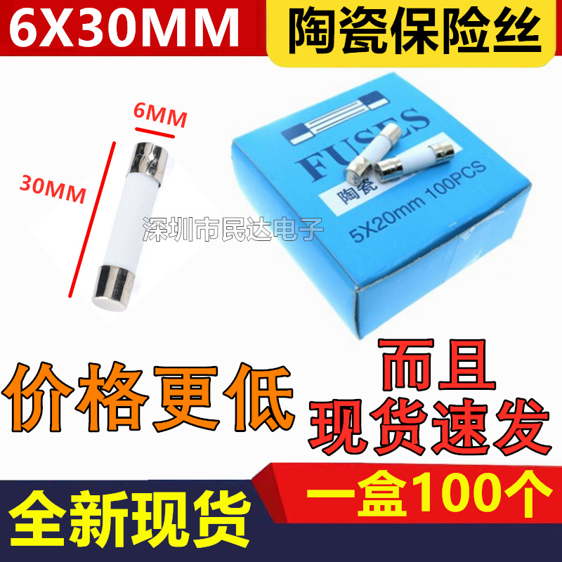 6x30mmセラミックヒューズ250v 1a 2a 3.15a 4a 6a 10a 20a 25a 30a