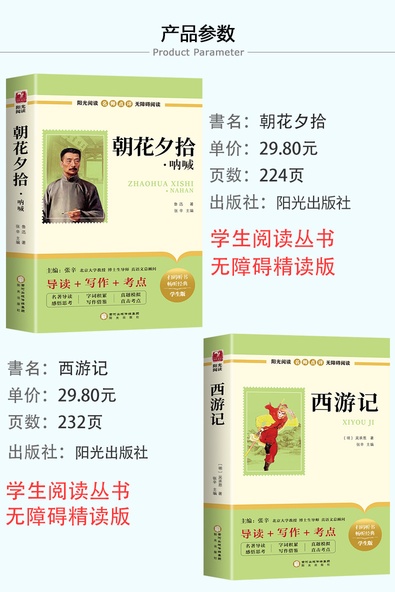 中学生必読の本格名作12冊、7・8・9年生向けの課外図書、朝花夕紅楼夢、西遊記
