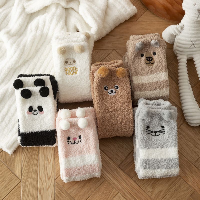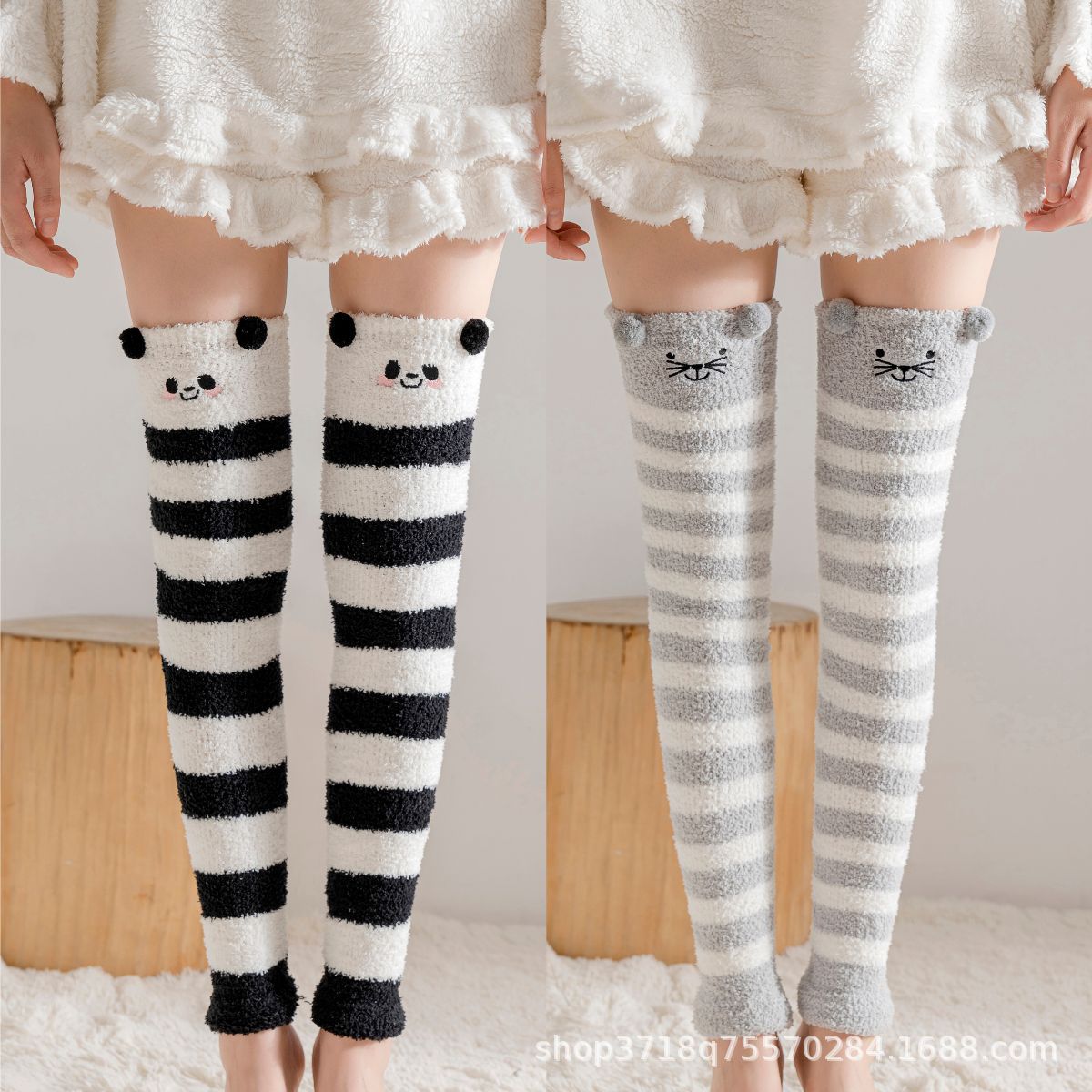 女性の夏の薄い珊瑚の絨毯は膝の靴下を過ぎて、厚い保温の女性の靴下の漫画の甘くてかわいい女性の靴下の睡眠の靴下をプラスします。