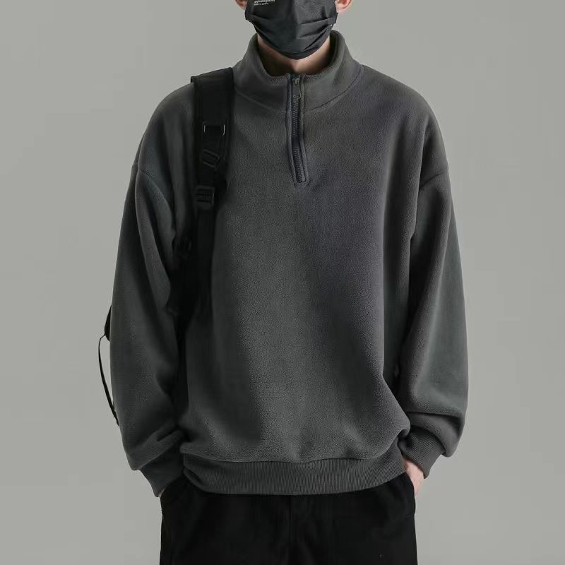 半拉链摇粒绒立领上衣加绒保暖厚款高领长袖男双面绒打底衫卫衣男