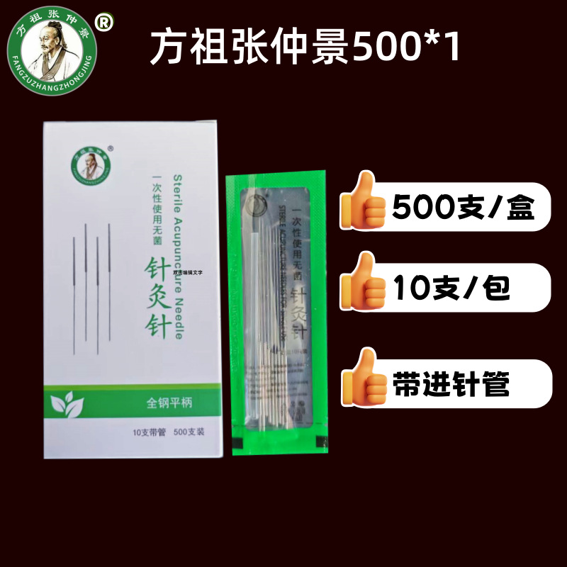 方祖张仲景针灸针500支一次性无菌毫针中医针灸针面针平柄针带管
