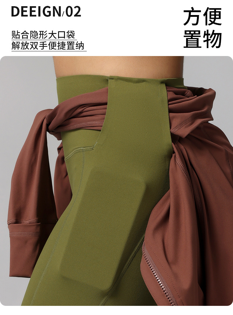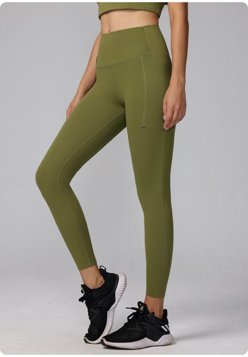 裸感ハイウエストポケット付きヨガパンツ レディース ピーチヒップアップフィットネスパンツ トレーニング ランニング スポーツタイツ 外出着としても着用可能