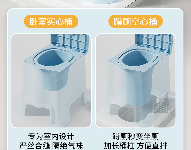 しゃがみトイレから座りトイレに変更、高齢者用家庭用夜間移動トイレ、高さ調整、消臭、室内ベッドサイドしゃがみトイレ