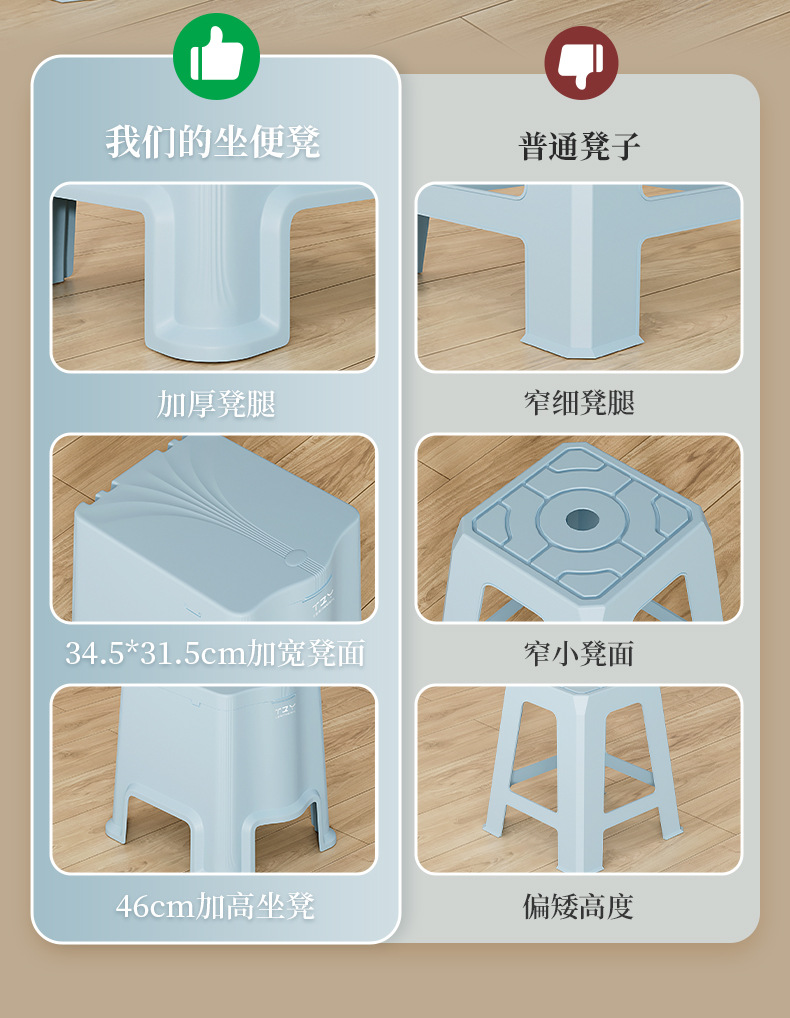 プラスチックスツール家庭用登子テーブル腰掛け椅子の厚い滑り止めベンチ客間熟ゴム角腰掛け北欧