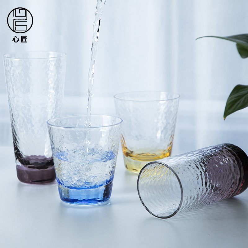 心匠の新しいシンプルなグラデーション青紫黄色ハンマーカップ高ホウケイ酸ガラスネット赤ビールジュースカップ家庭用