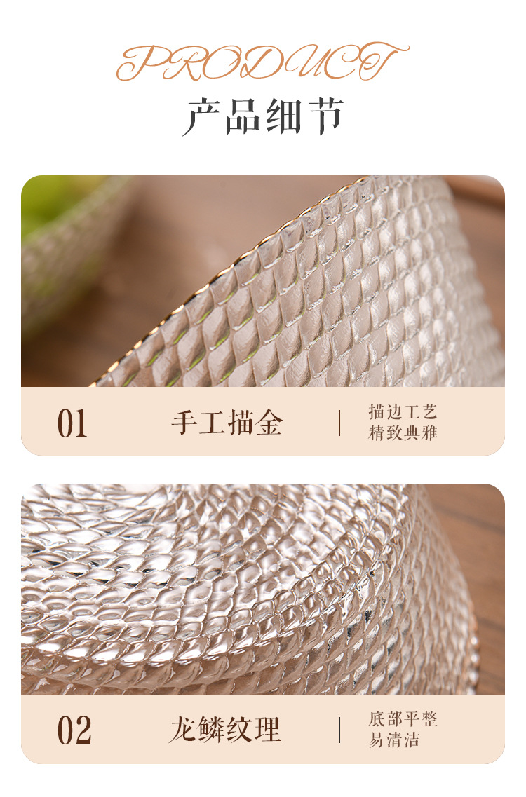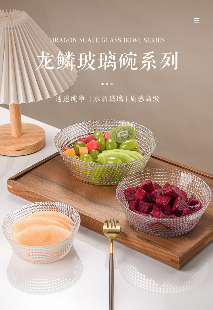 北欧スタイルのホームリビングルームクリエイティブスナックフルーツプレートドラゴンスケールボウルモダン透明卸売