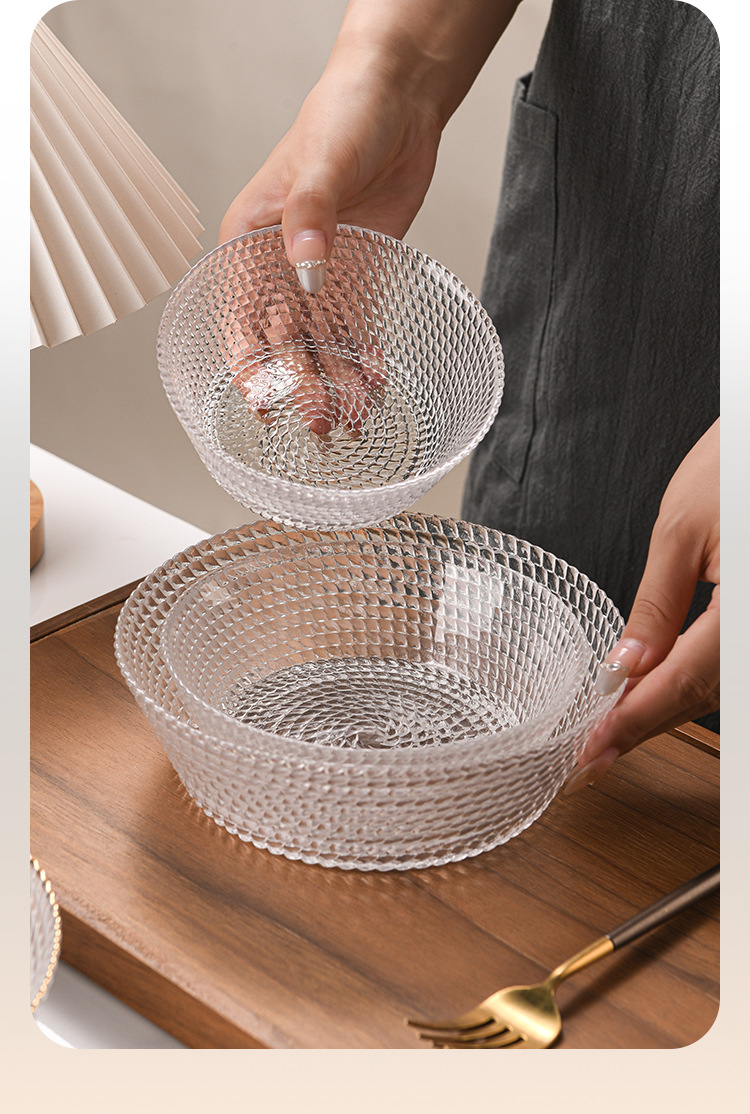 滄海ガラス食器 家庭用スープボウル デザートサラダボウル シンプルで高級感のある浅皿 デザートプレート フルーツプレート