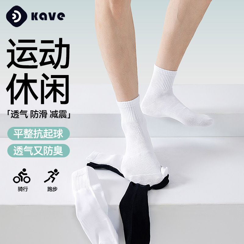 白色袜子男士运动袜纯棉长袜四季防臭袜吸汗动短袜春秋黑白中筒袜