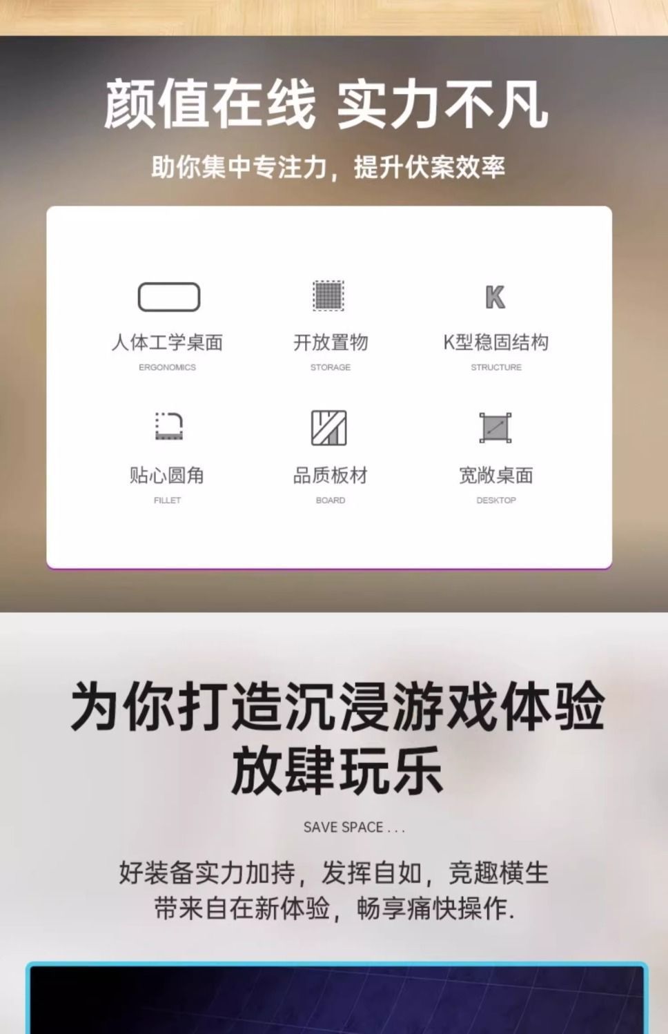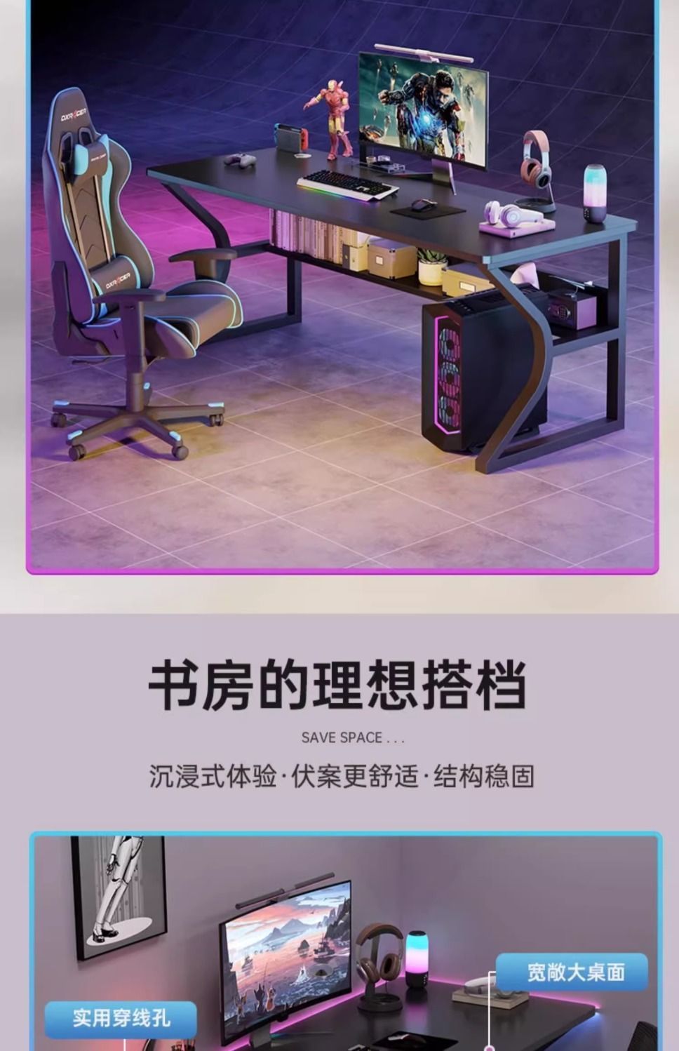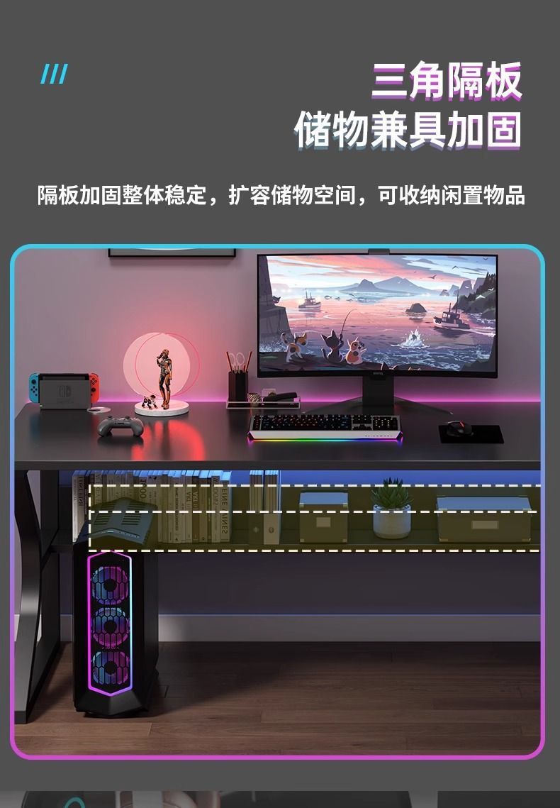 コンピュータのデスクトップの電気競争のテーブルの家庭用の物置棚を持っています。