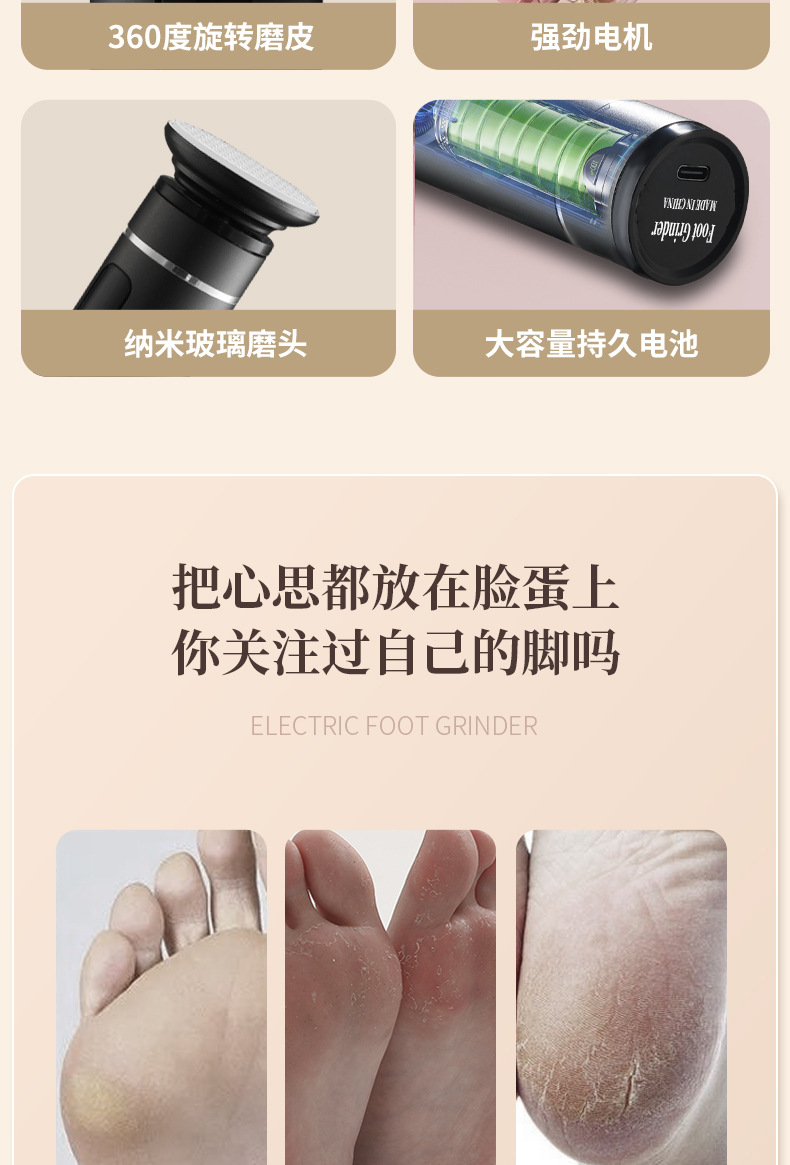 电动磨脚器打磨脚后跟神器跨境新款搓脚修脚美甲店去死皮脚皮修足
