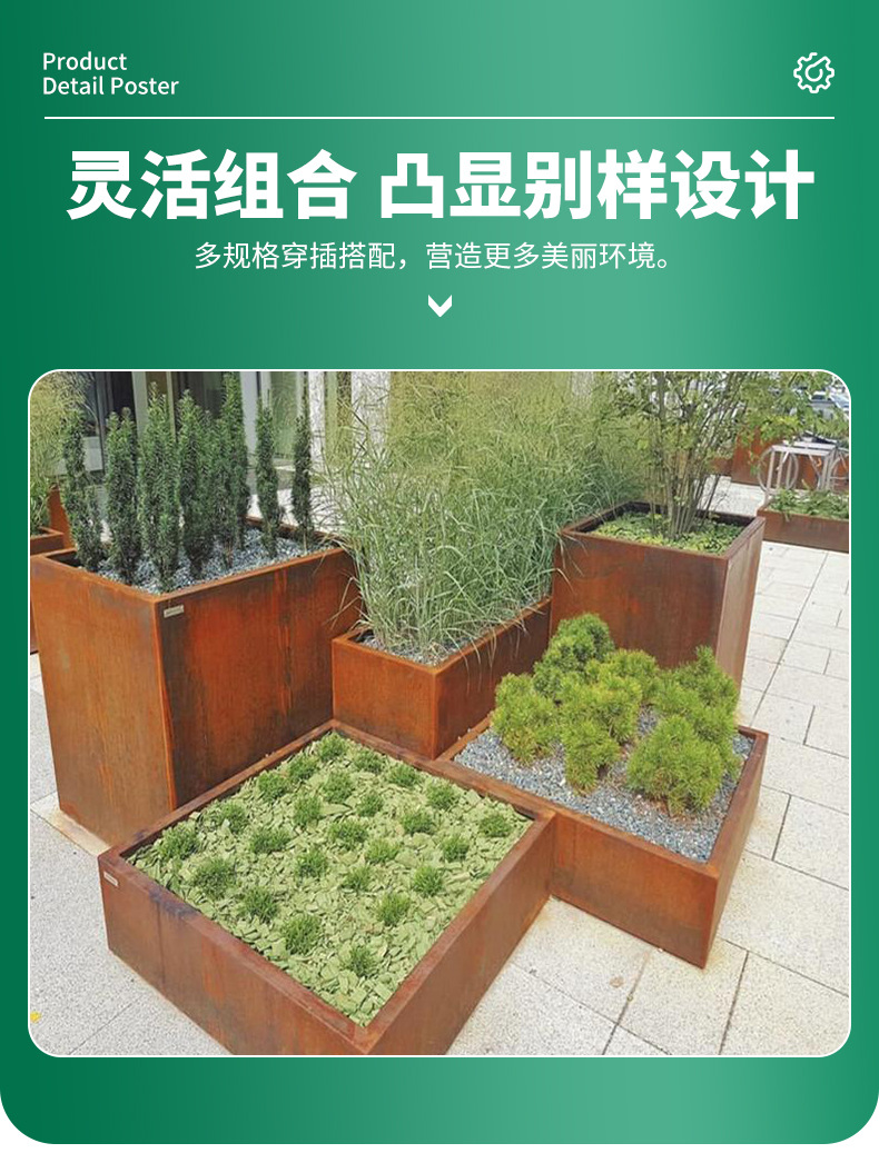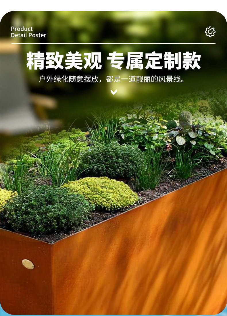屋外耐候性鋼製フラワーボックス、バルコニー用組み合わせ植栽ボックス、シート、市営庭園、境界壁、花窓、間仕切り、フラワーベッド