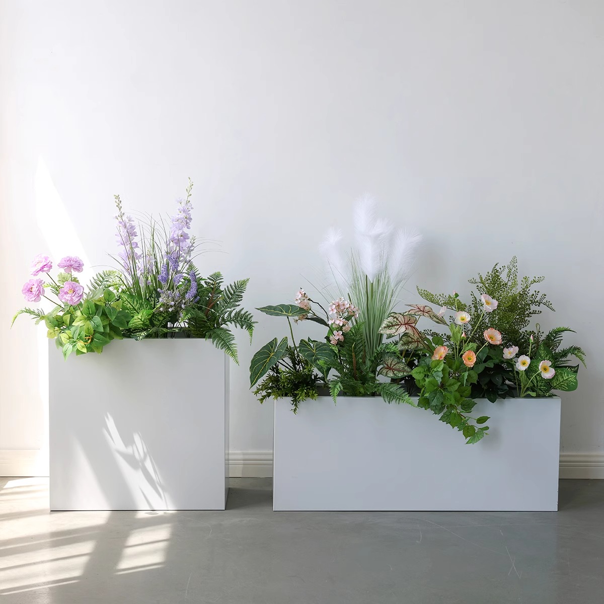 ステンレスのハイエンドの花の池の柵の厚い花の箱の組み合わせの外で長方形の植木鉢のホテルの花台の囲いの屋外を並べます。