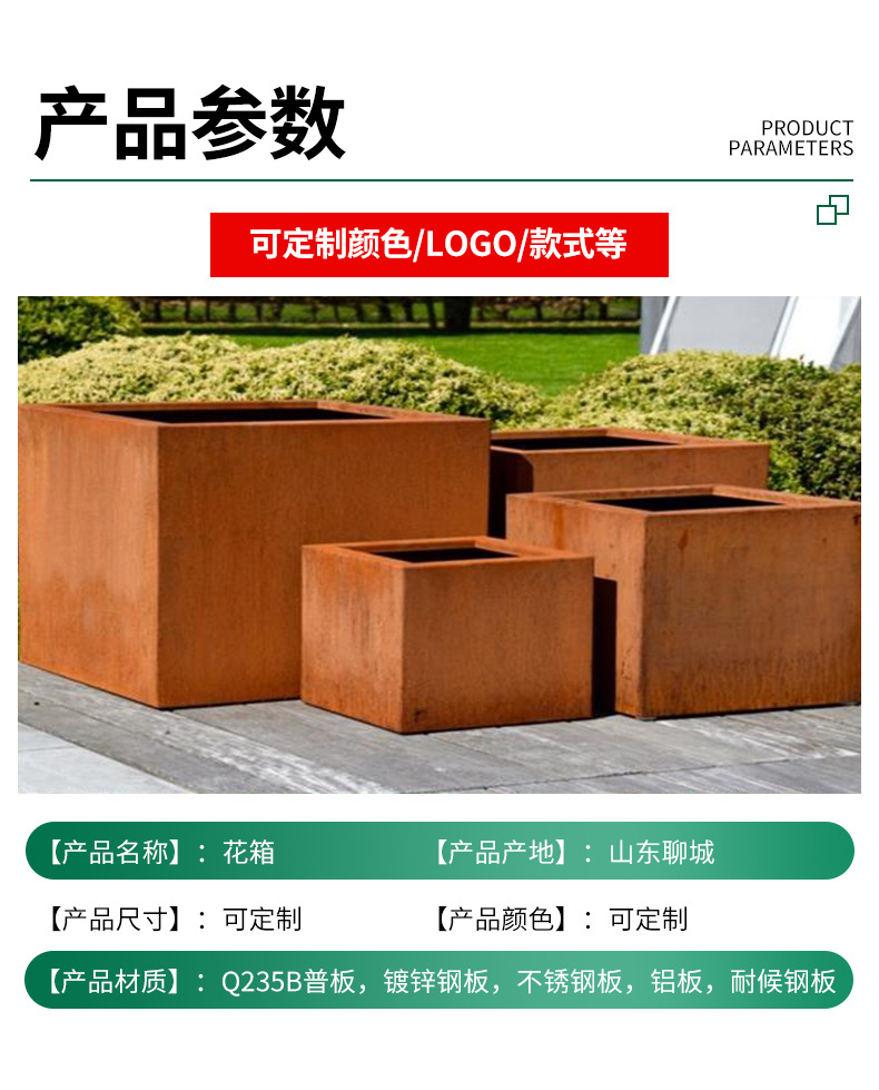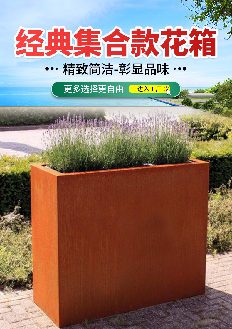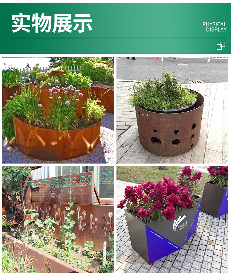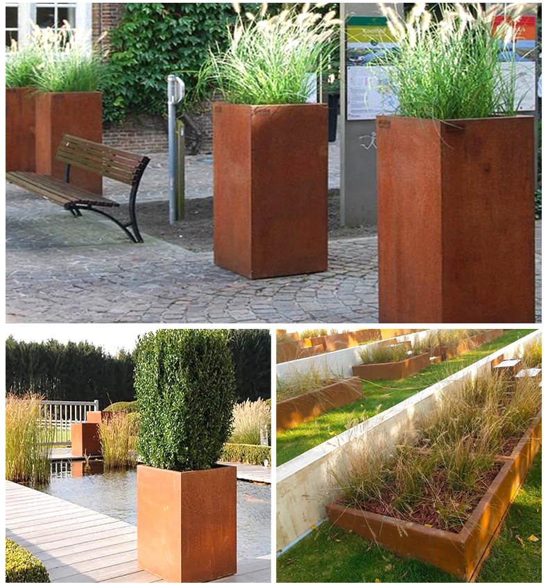 赤錆耐候性鋼植木鉢植栽ボックス庭の風景錆鋼板フラワーボックスメーカー卸売耐食性