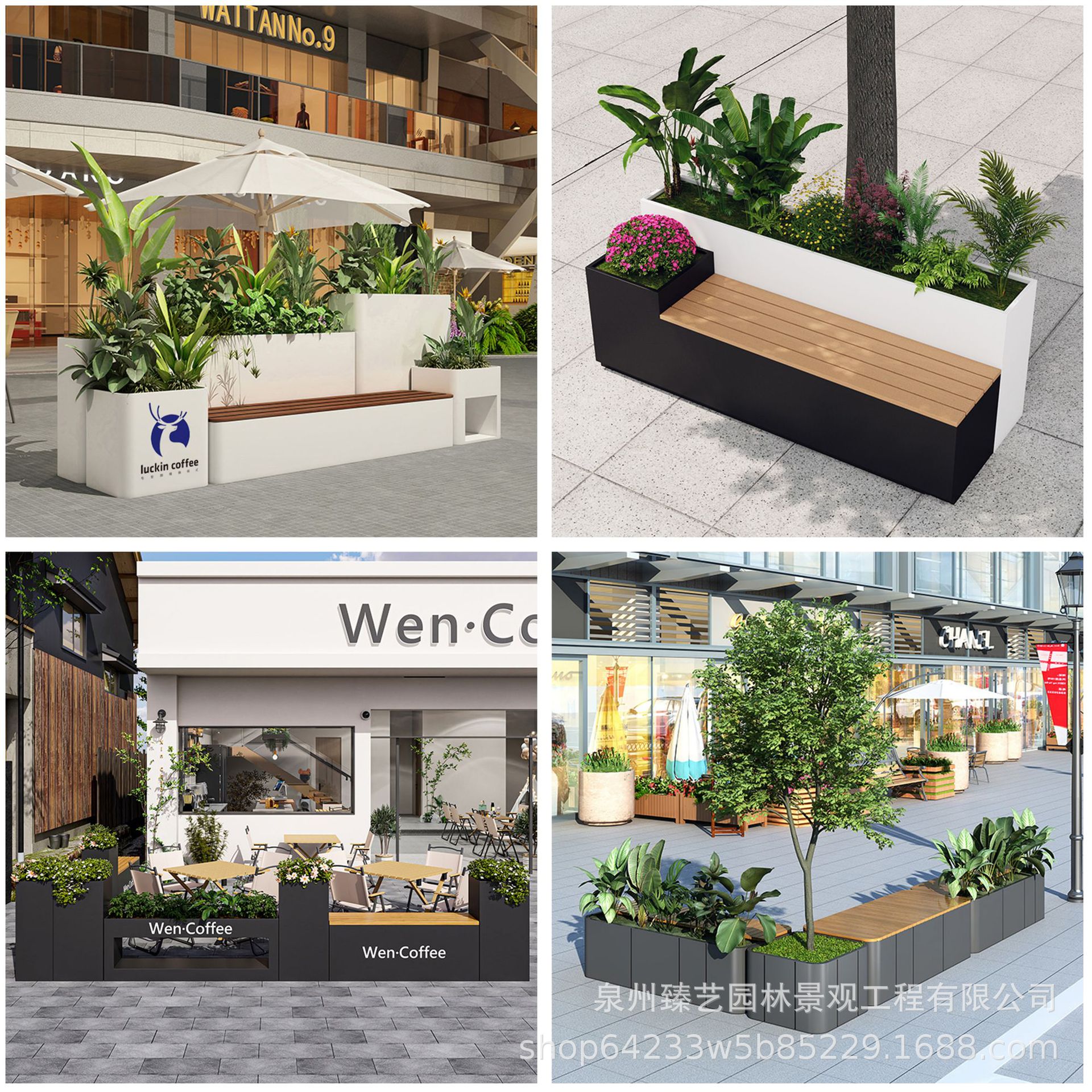 户外不锈钢坐凳花箱组合售楼部移动花架树池商业街小区树箱铁艺
