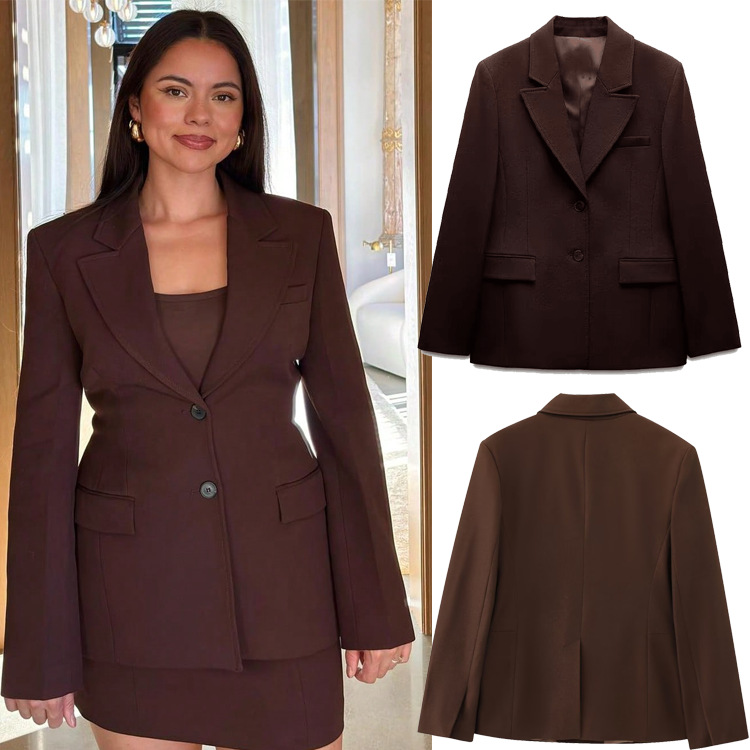速卖通人気商品、越境EC向け欧米婦人服、ZAストリートファッショントップス、カジュアルスーツジャケット