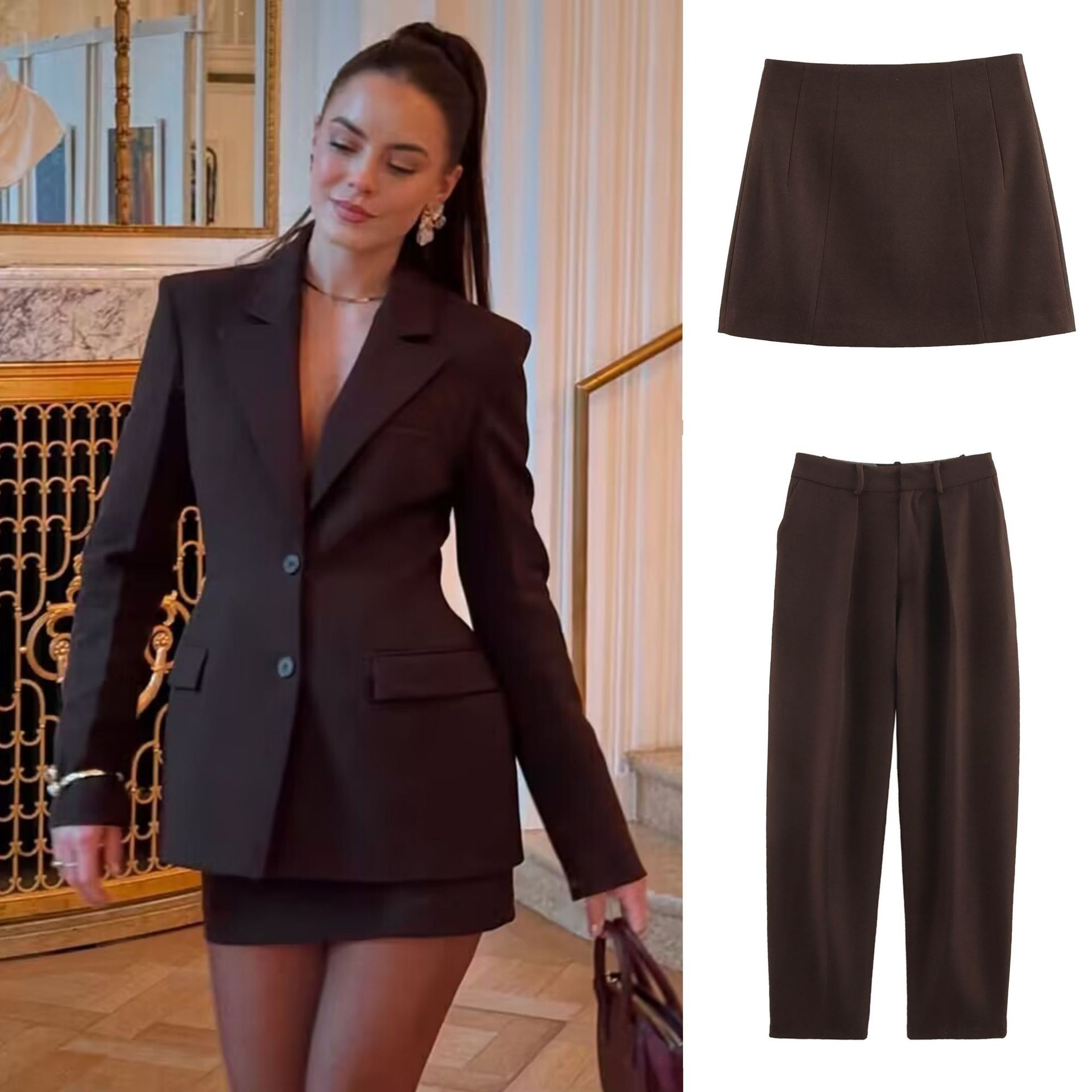 2025年春夏クロスボーダー速売通起爆金純色気質ウエストスーツジャケットスカートセット