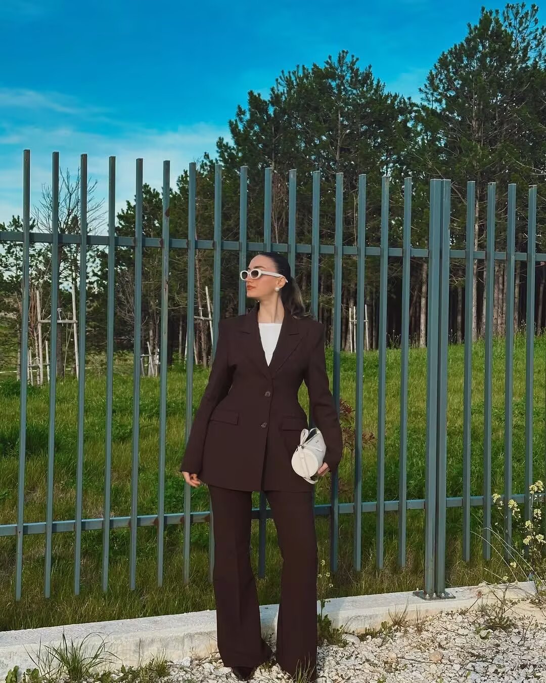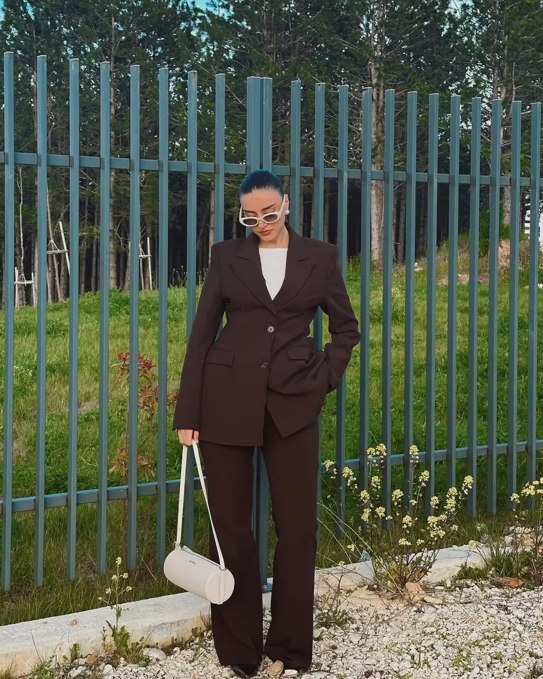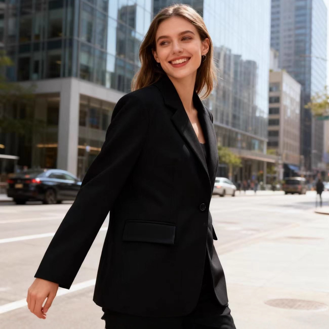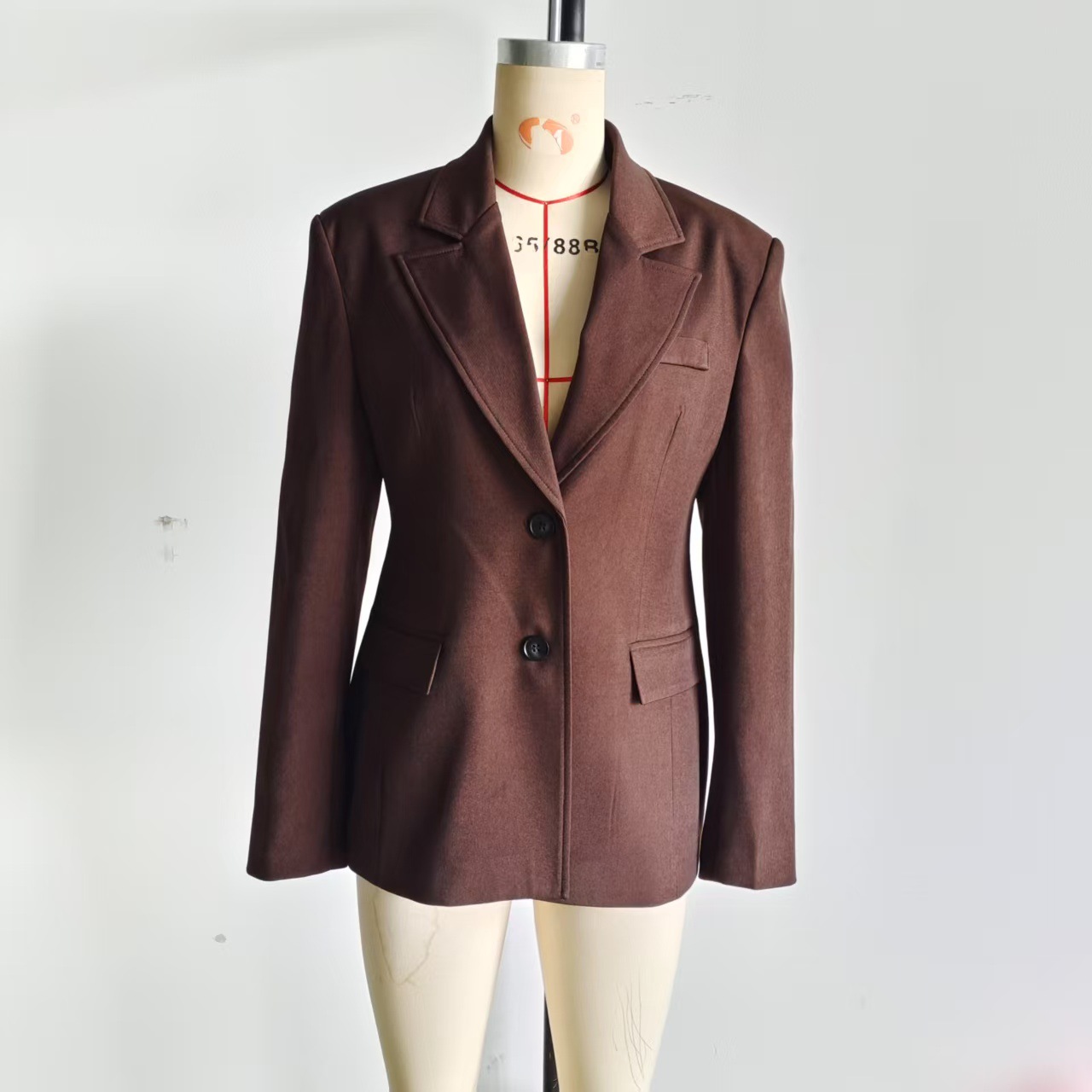 速卖通越境貿易 欧米婦人服 2025 ダブルブレスト シンプルファッション ウエストシェイプ 無地スーツジャケットセット