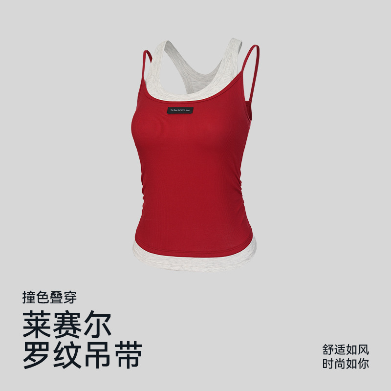 带胸垫莱赛尔松弛感撞色叠穿吊带背心可外穿户外运动健身瑜伽上衣