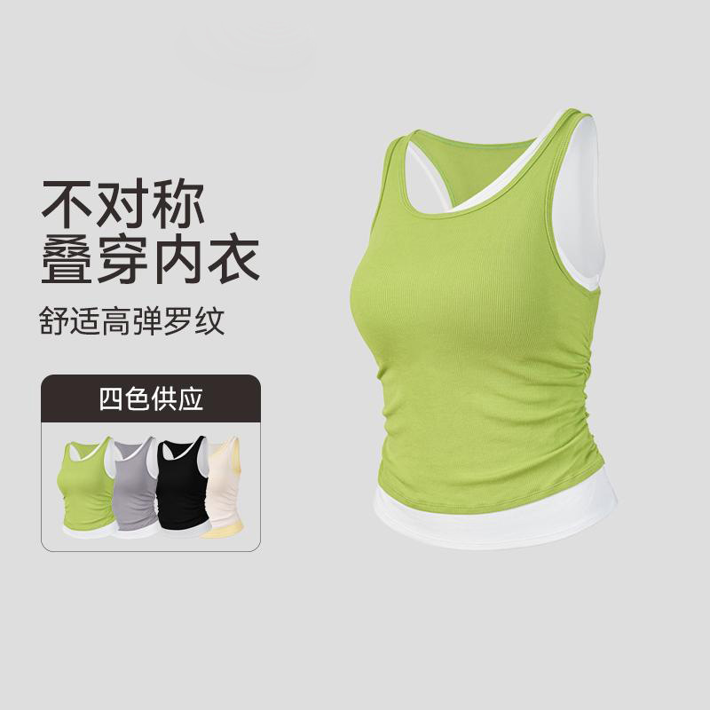 不对称假两件户外运动背心高弹力外穿一体胸垫瑜伽健身内衣上衣