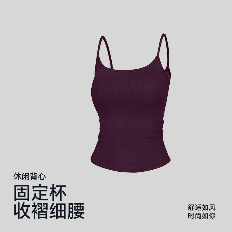 吊带固定杯带胸垫运动背心辣妹超弹细腰透气日常休闲透气弹力上衣