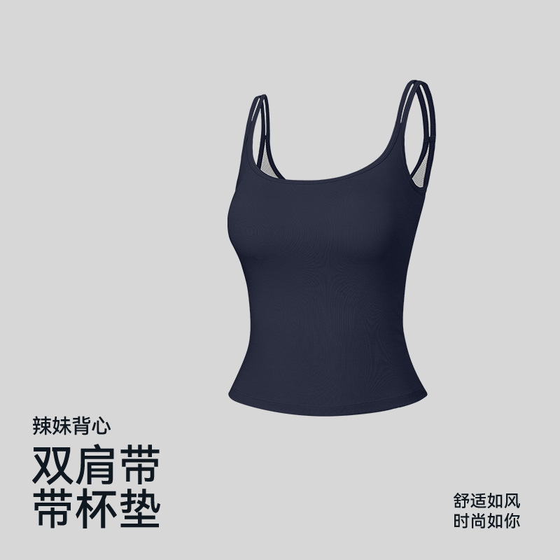 新款莱赛尔带胸垫百搭U领边弹力满背休闲户外运动瑜伽健身背心