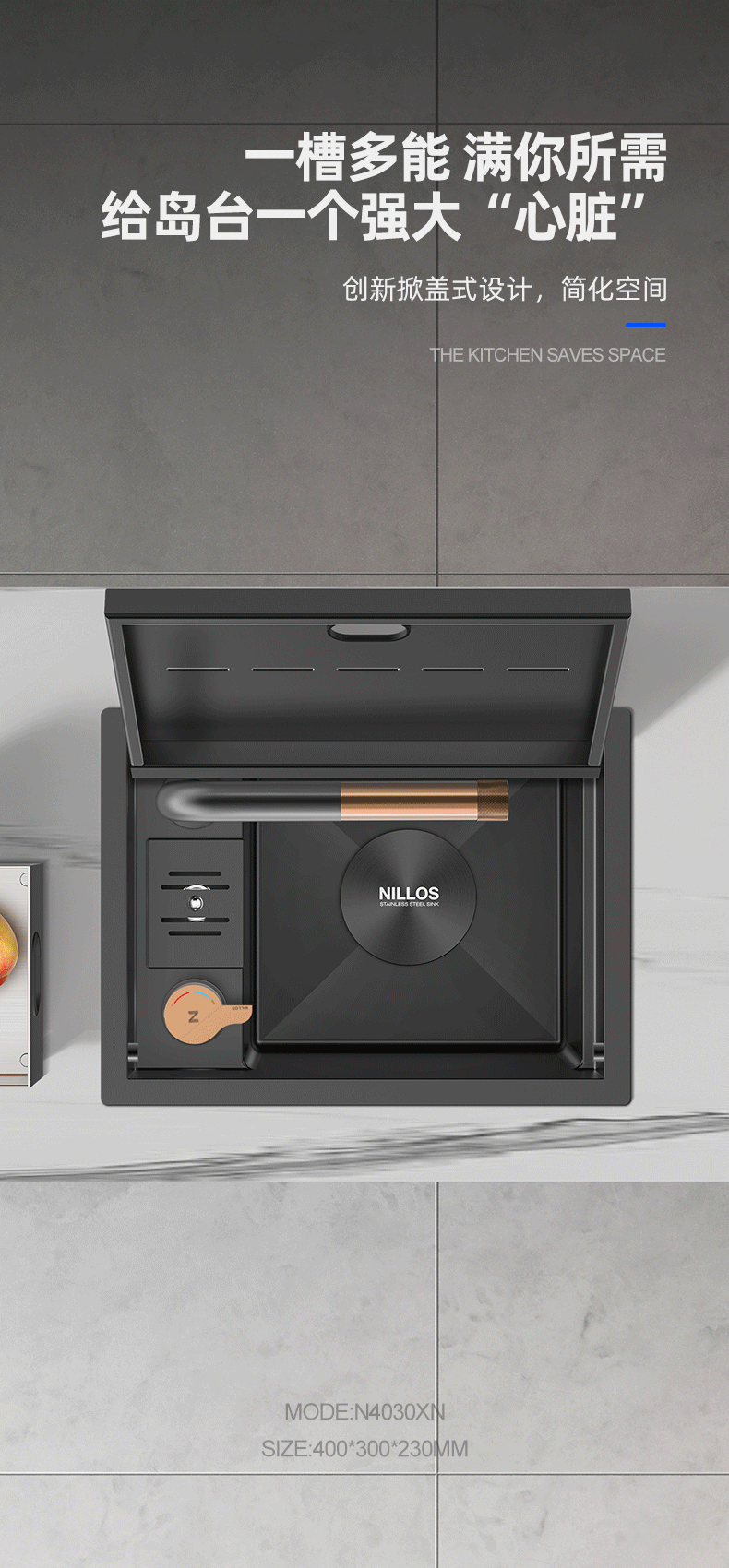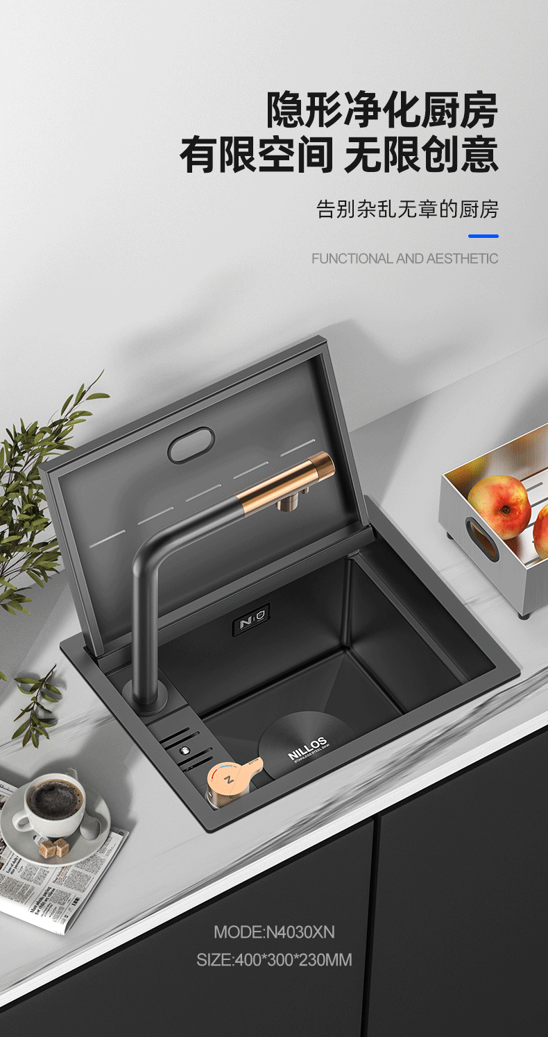 ネロ施厨房スマート水槽304ステンレスナノ果物と野菜を浄化して野菜を洗うたらいが見えないように隠しています。
