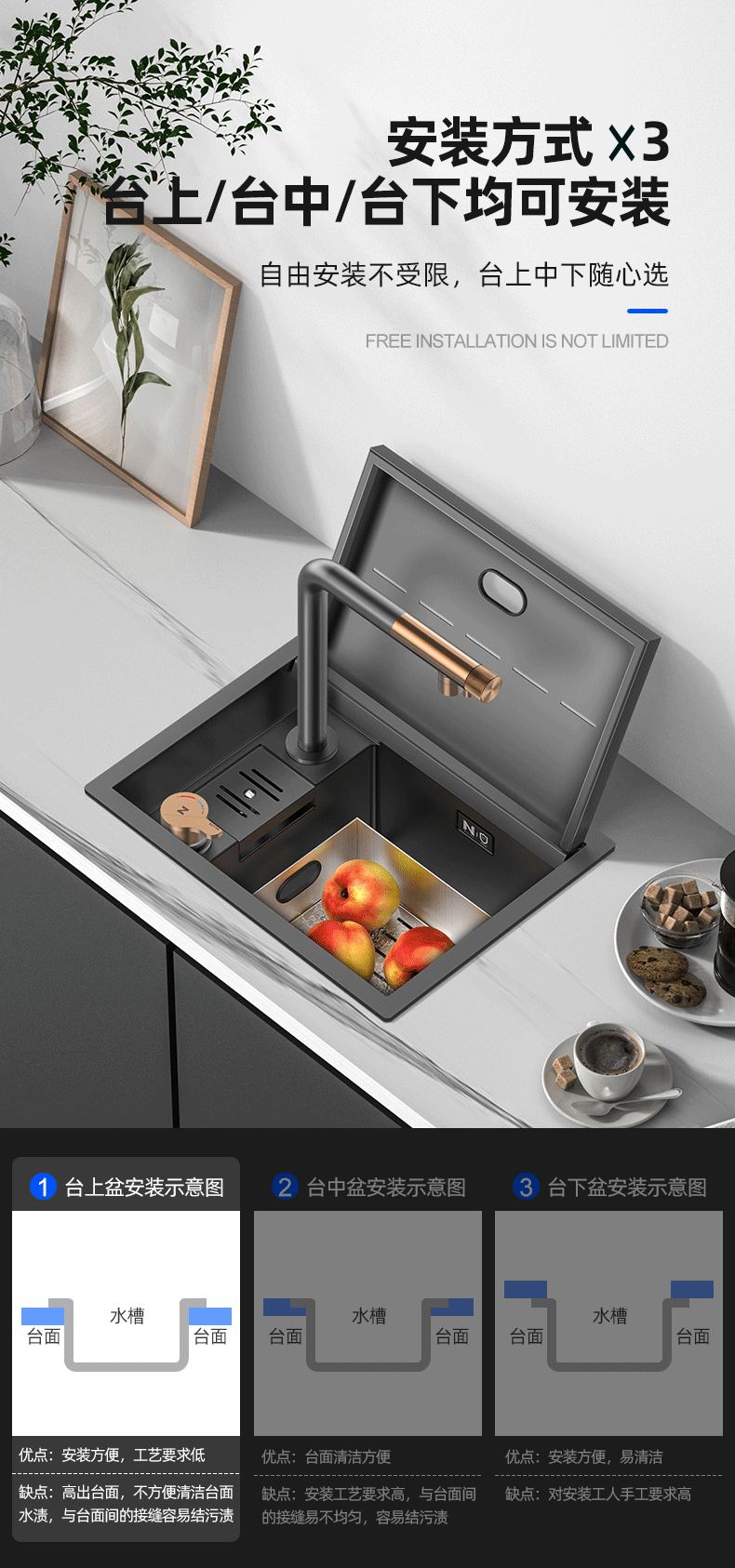 ステルス水槽厨房小単槽ナノ304ステンレスカウンター中島西厨ミニ野菜鉢カバー付き