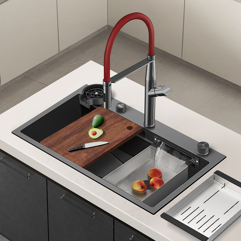 ネロ施知能果物と野菜の洗浄水槽のカウンターの島台の隠れている野菜のたらいのナノ浄化のコップの器の小さい単槽