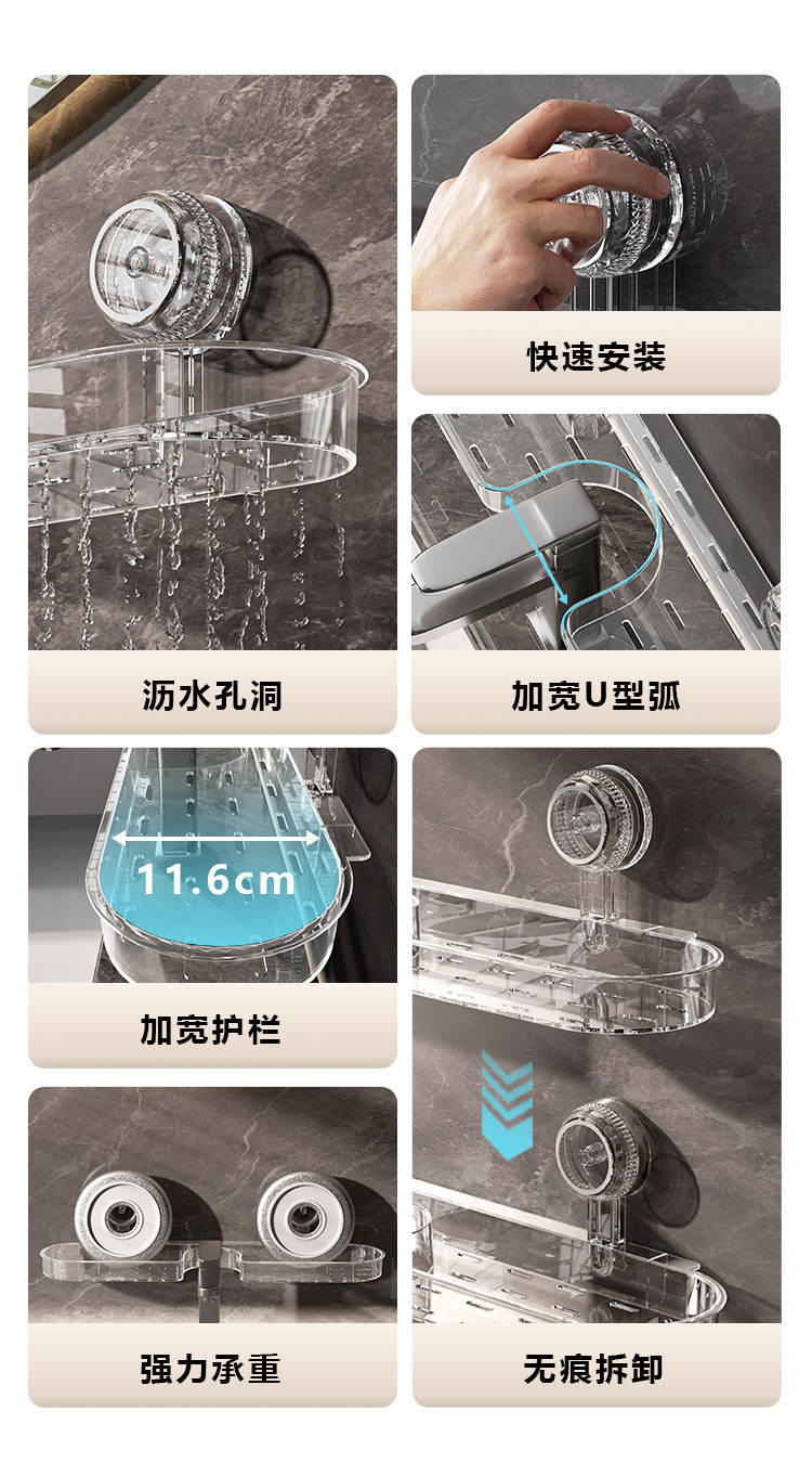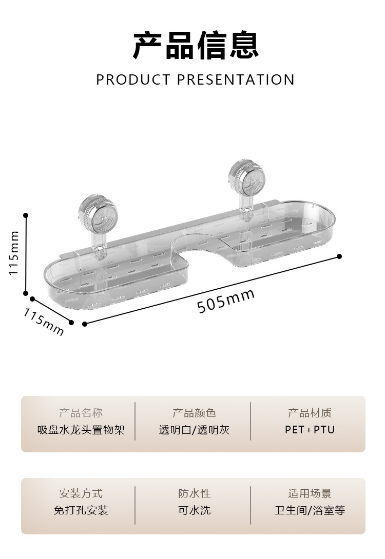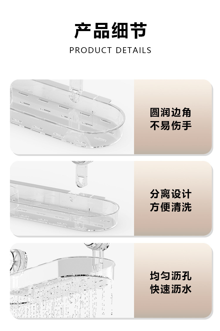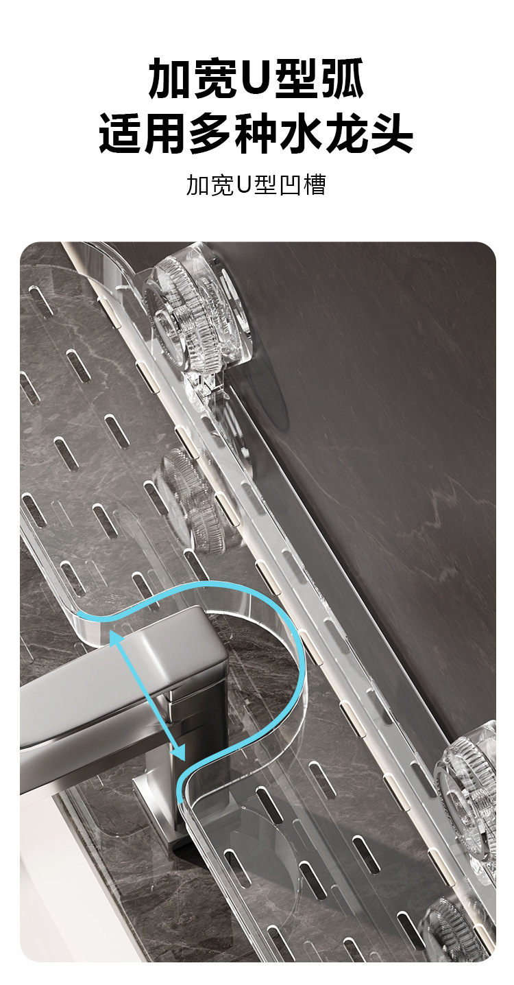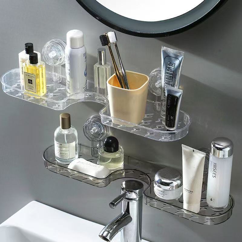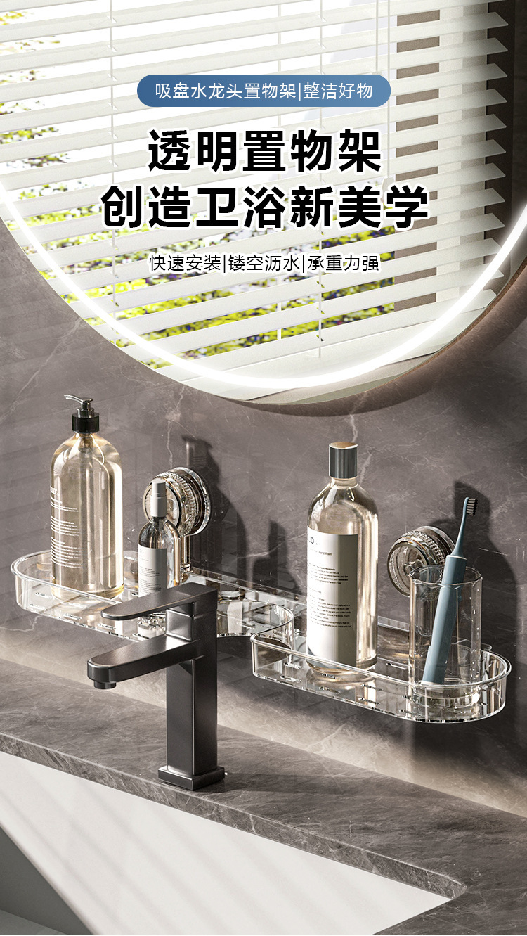 洗手台吸盘置物架免打孔水龙头收纳架透明塑料浴室洗浴用品整理架