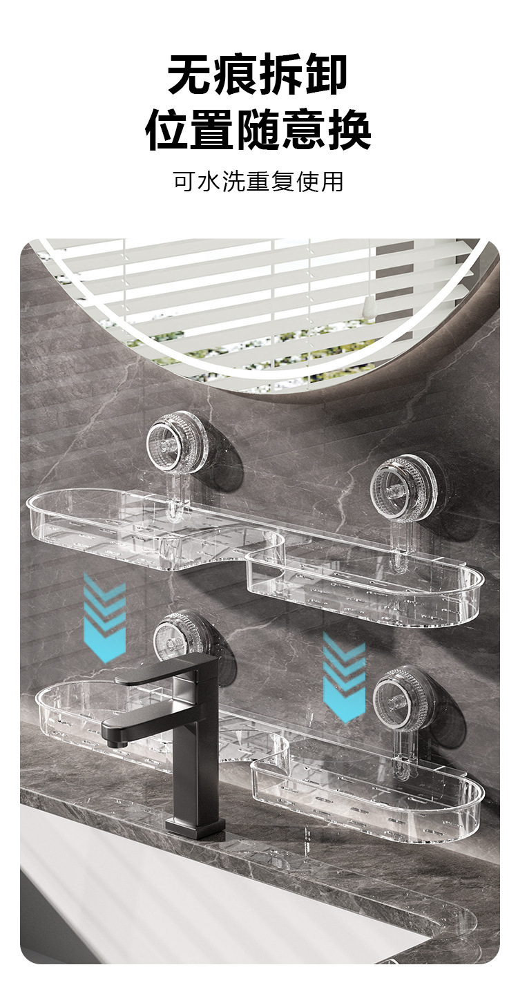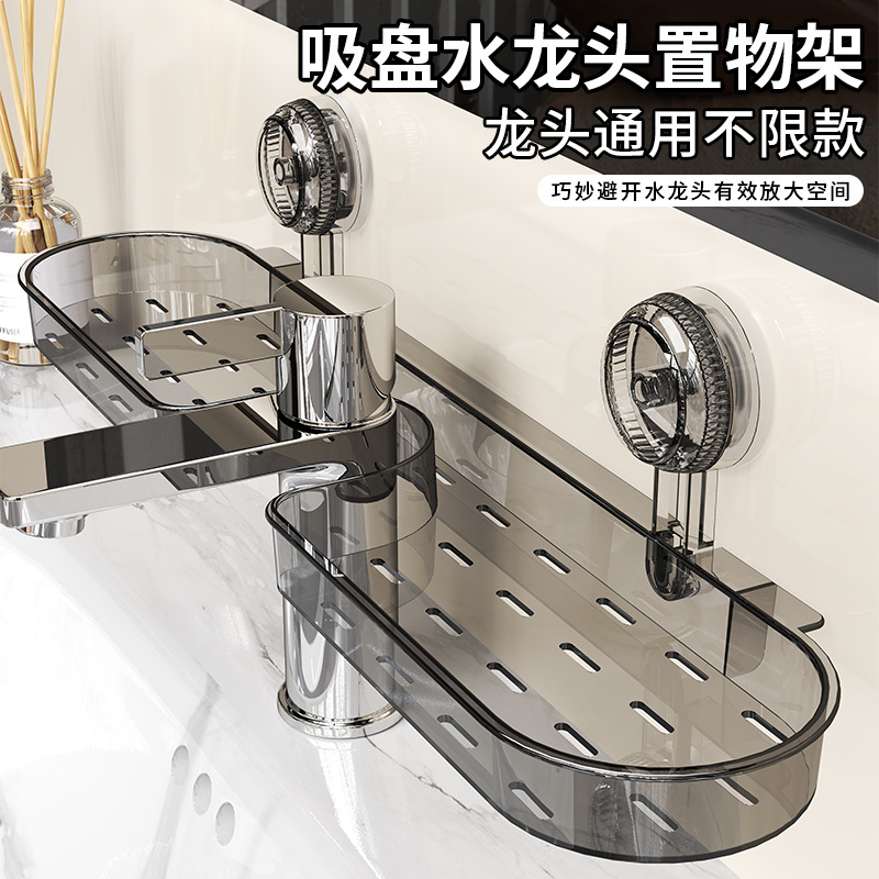 吸盘洗漱台置物架卫生间厕所镜前水龙头浴室高颜值免打孔壁挂通用
