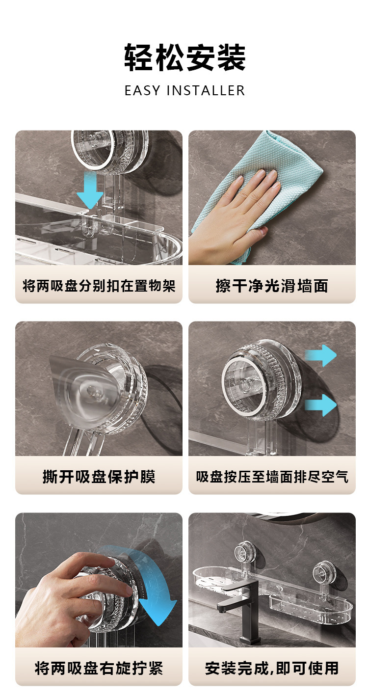 吸盘洗漱台置物架免打孔水龙头置物架厕所洗手池镜前收纳架子壁挂