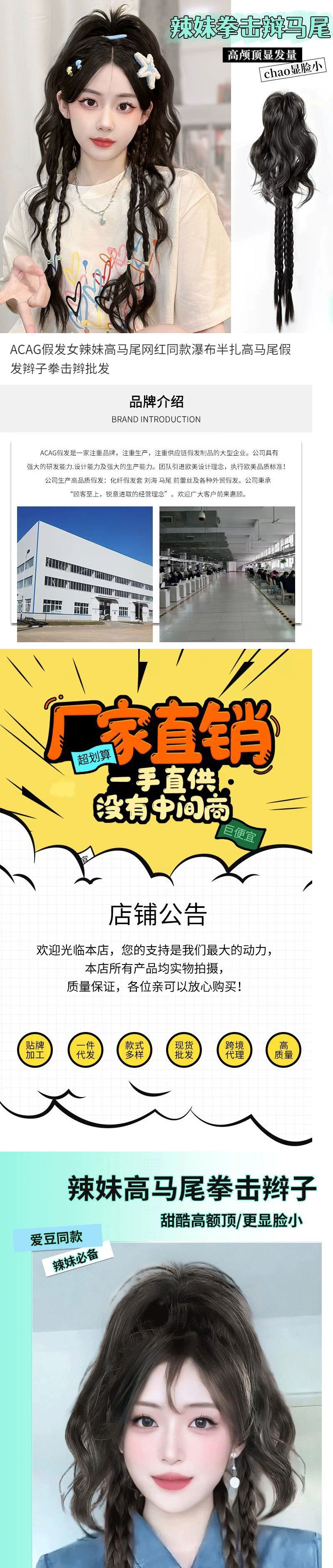 ACAG 女性用ウィッグ、ネットセレブ、軽くて甘い、ハイライトボクシングディフェンスウォーターフォール、ハーフタイハイポニーテール、人工毛ポニーテールグリッパー