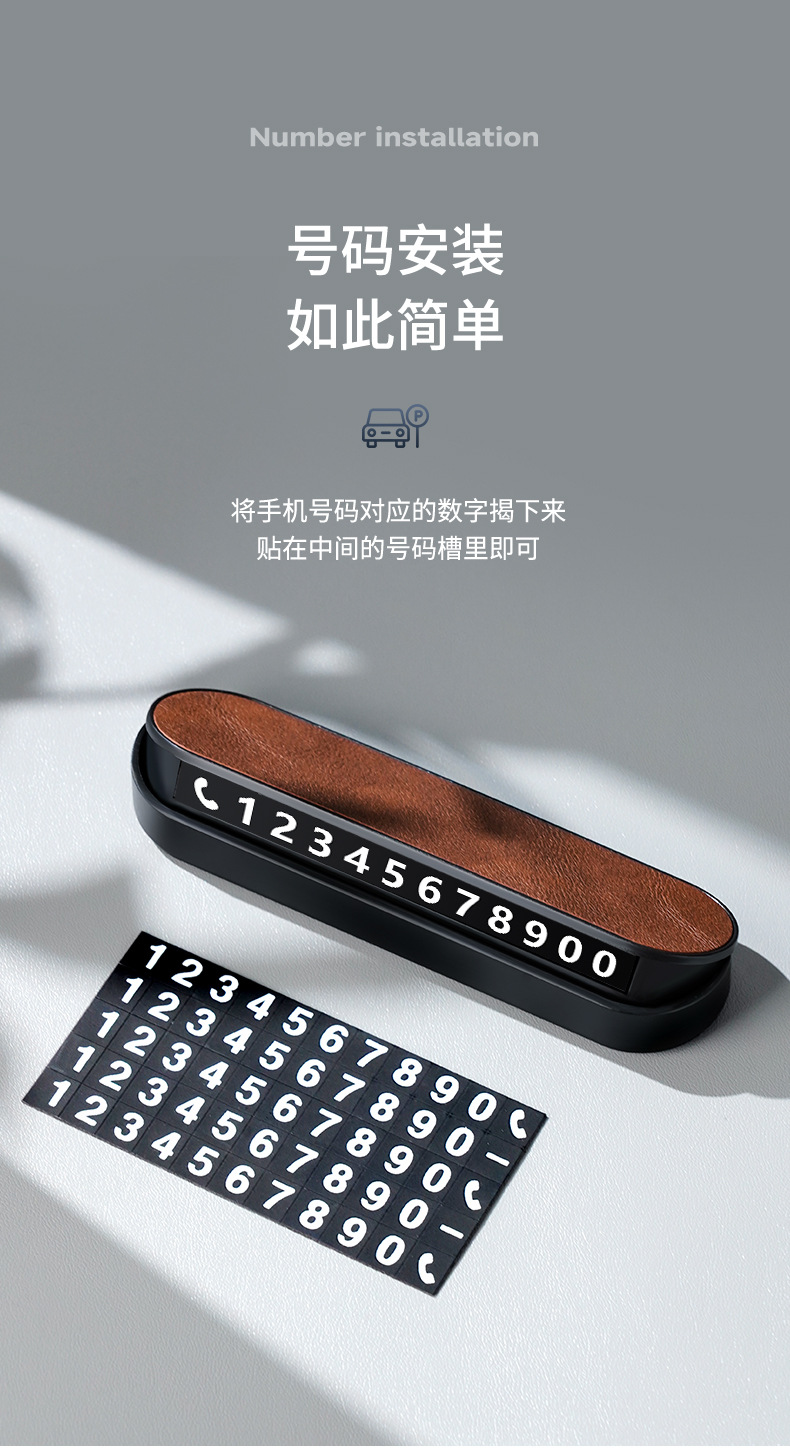 新しい駐車番号プレート、高級レザー一時駐車番号、トラック搭載発光車移動電話番号
