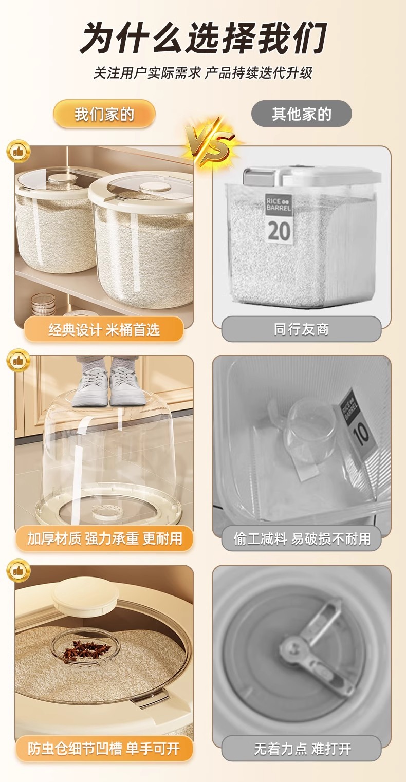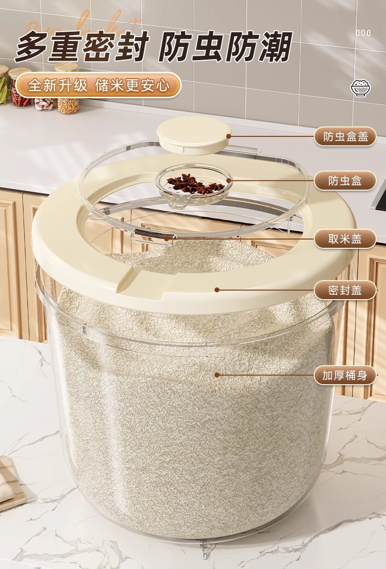 米桶家用2025新款防虫防潮密封食品级大米收纳盒面粉储存罐装米缸