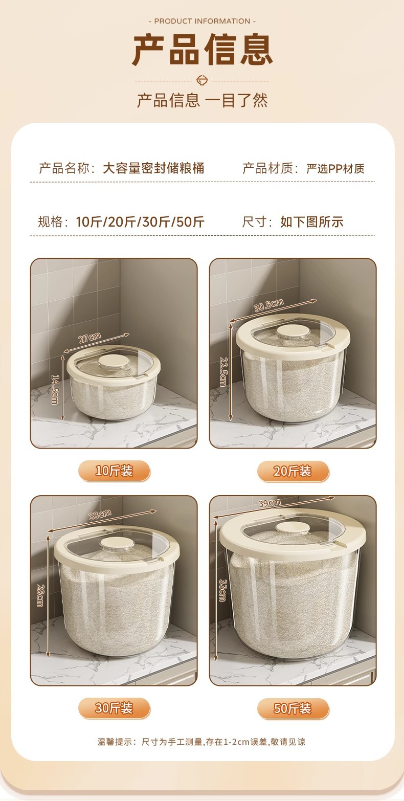 米バケツ密封家庭用 2025 新しい保存アーティファクト防虫防湿食品グレードの米粉穀物貯蔵タンク