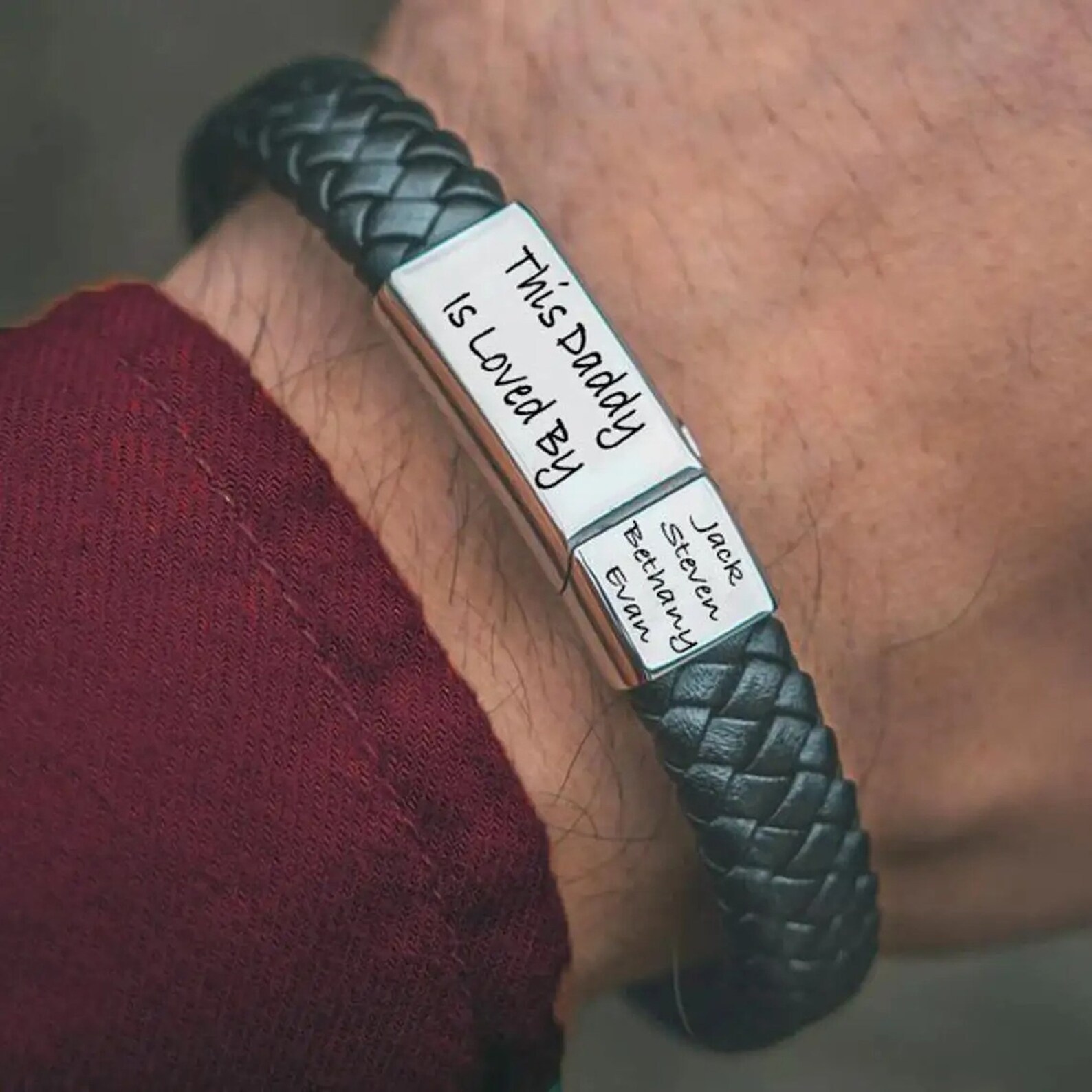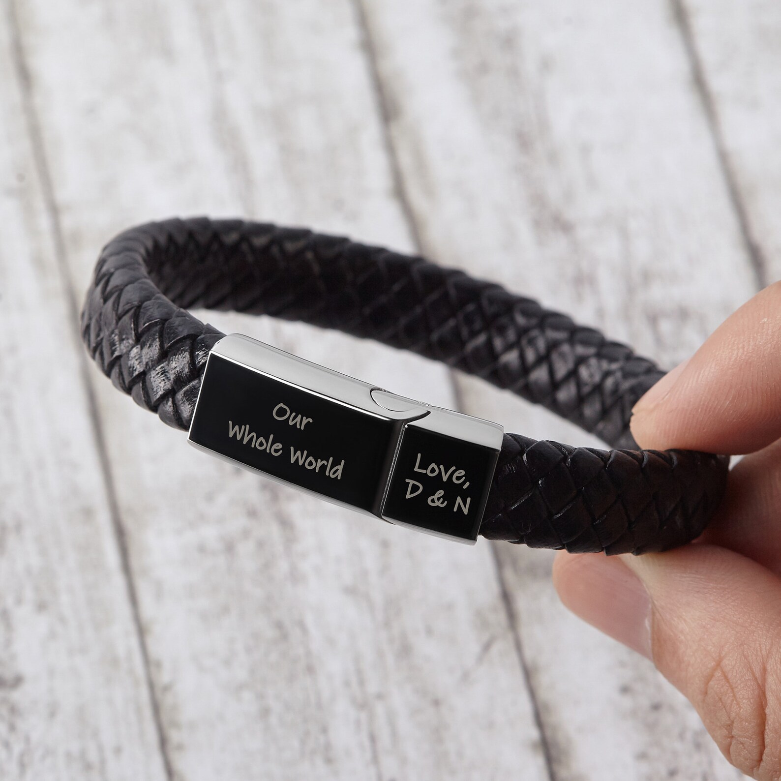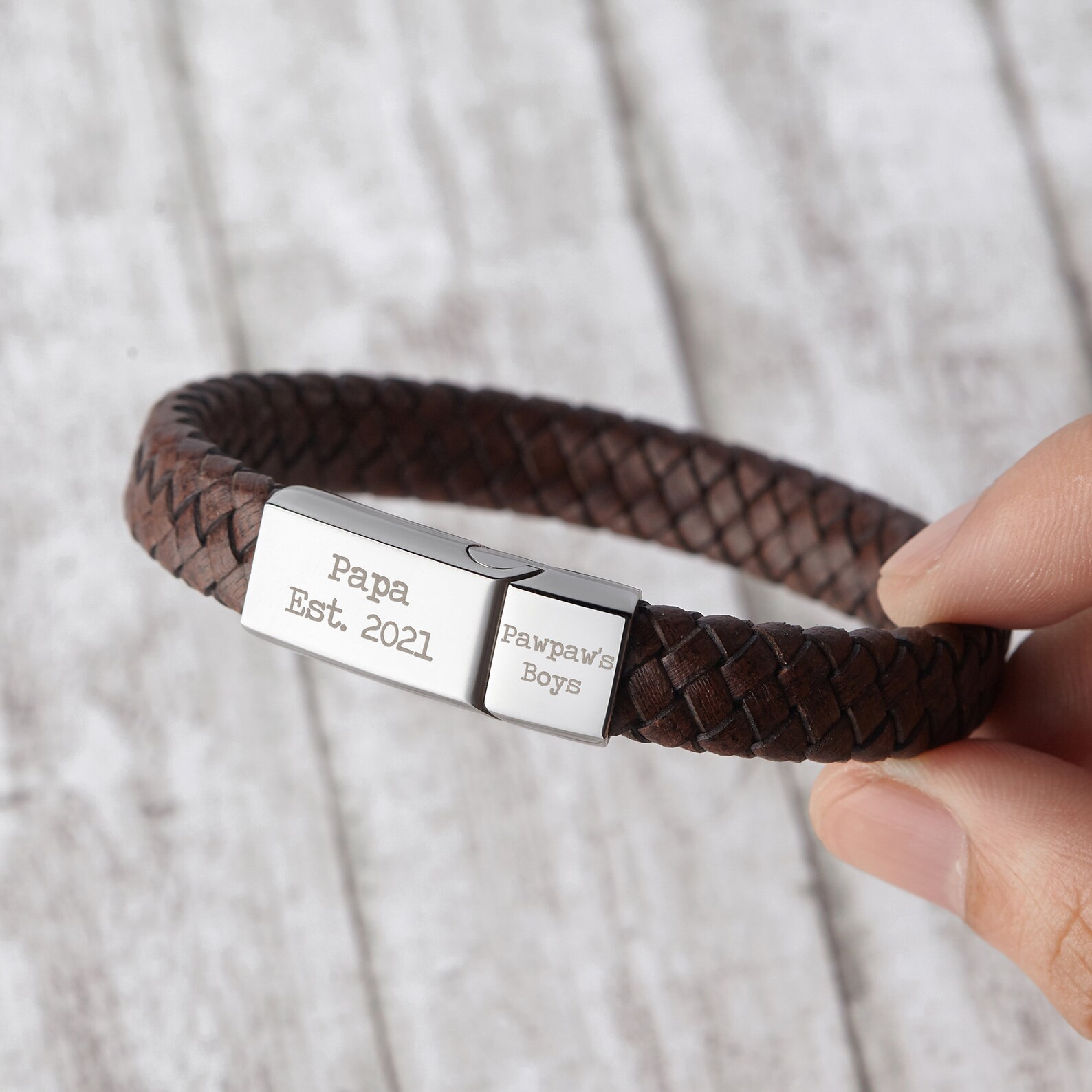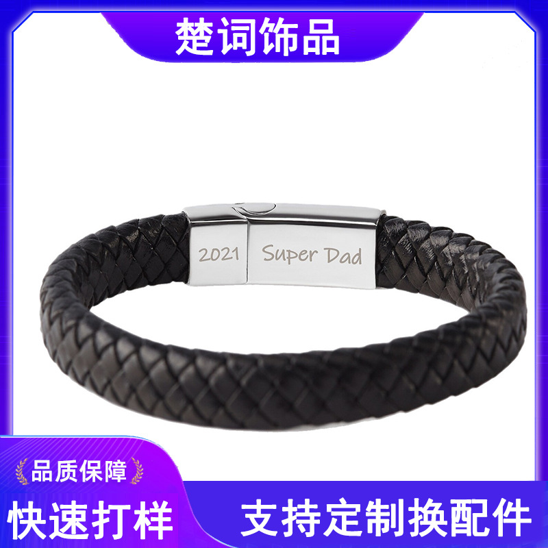跨境男士皮质手环编织手镯时尚精致复古手工男式刻字不锈钢手链