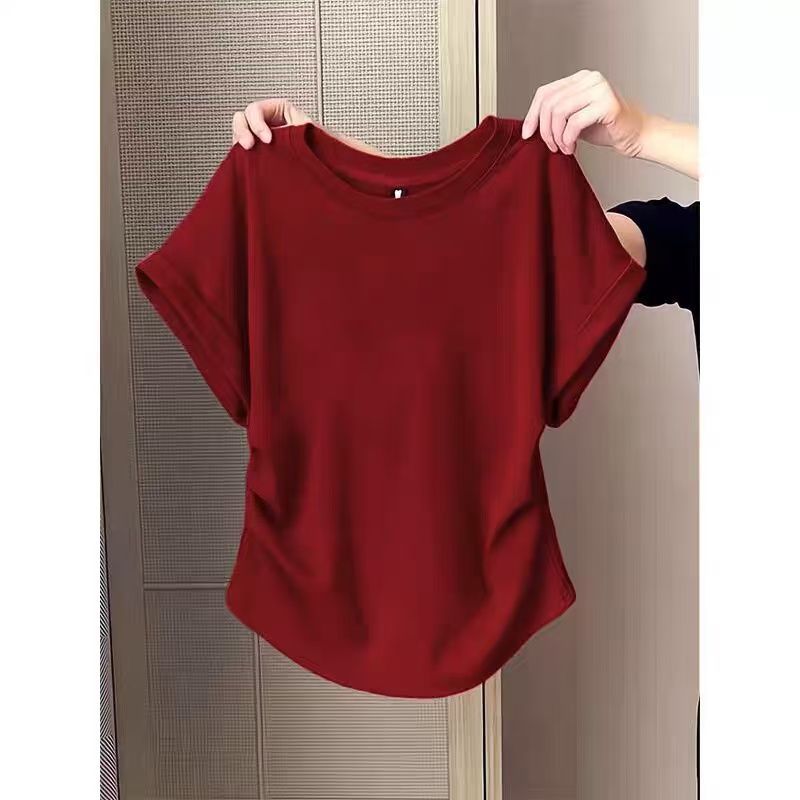 210グラム92綿8スパンデックスコットン半袖tシャツ女性純綿夏のしわデザイン感の短い上着