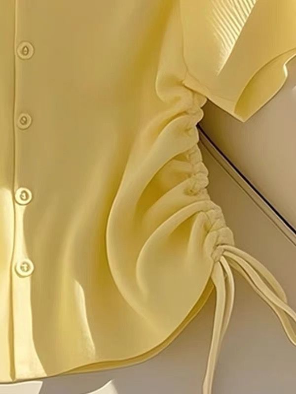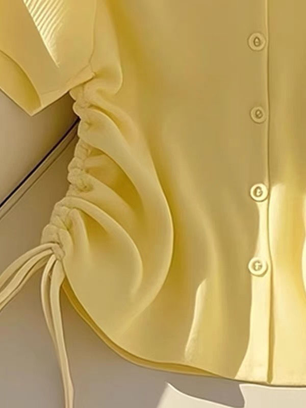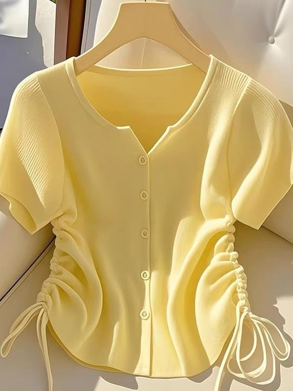 超見栄えの良い黄色の巾着半袖アイスシルクショートニットカーディガンTシャツレディース夏シック韓国トップストレンディイン