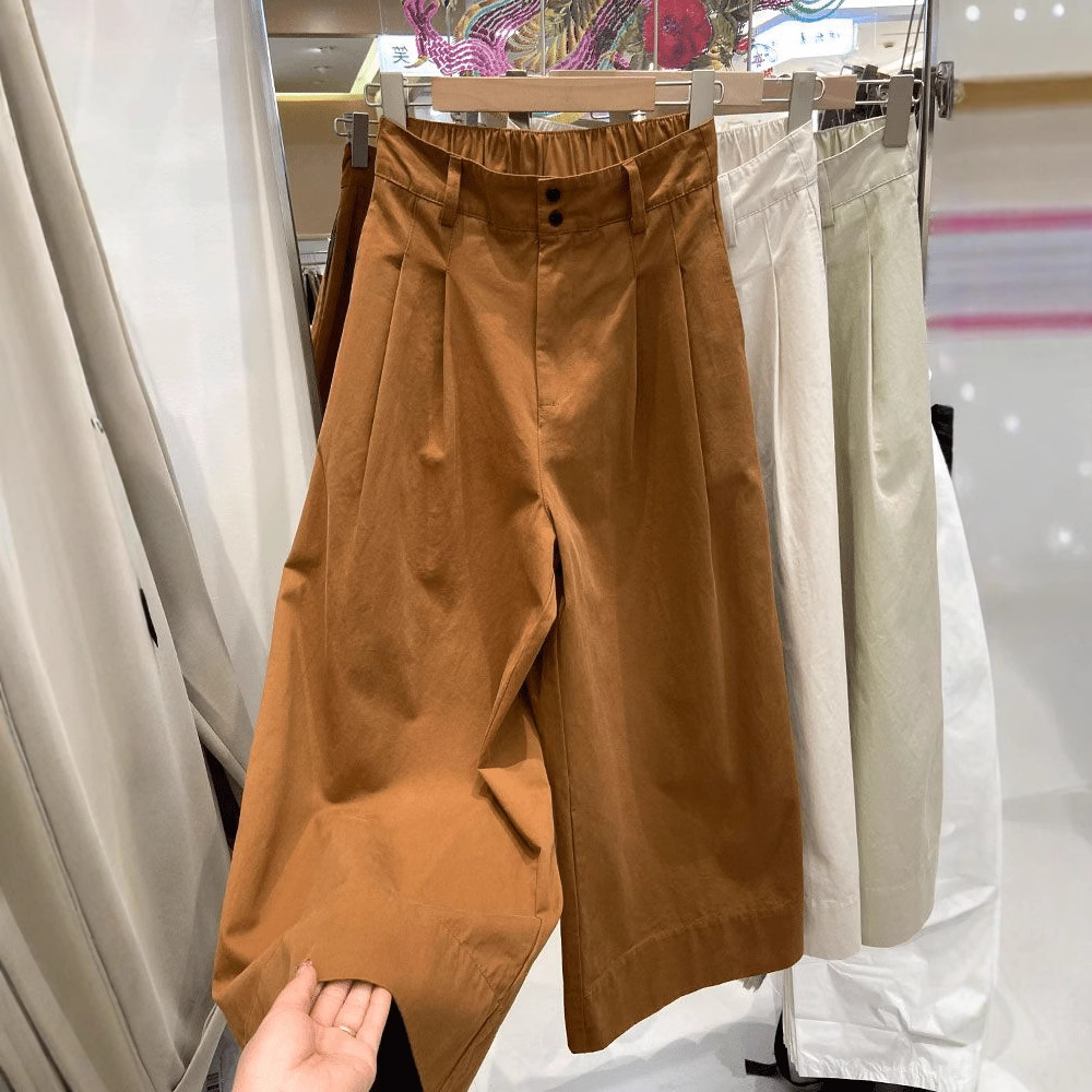 2025 夏ストレートレッグ 5 点パンツ韓国スタイルのファッションカジュアル弾性ウエストワイドレッグパンツハイウエストスカートパンツ痩身
