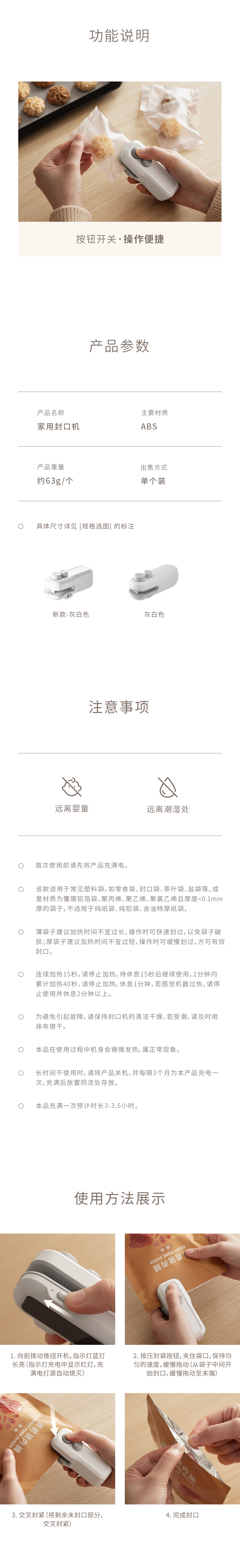 ✅ 家庭用小型シーラー、手動式、スナック、ミニ、便利、食品、プラスチック